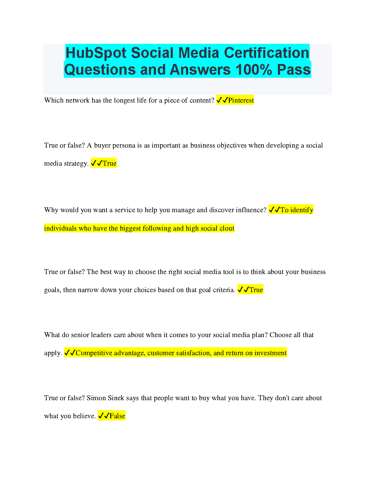 HubSpot Social Media Certification Questions and Answers 100% Pass