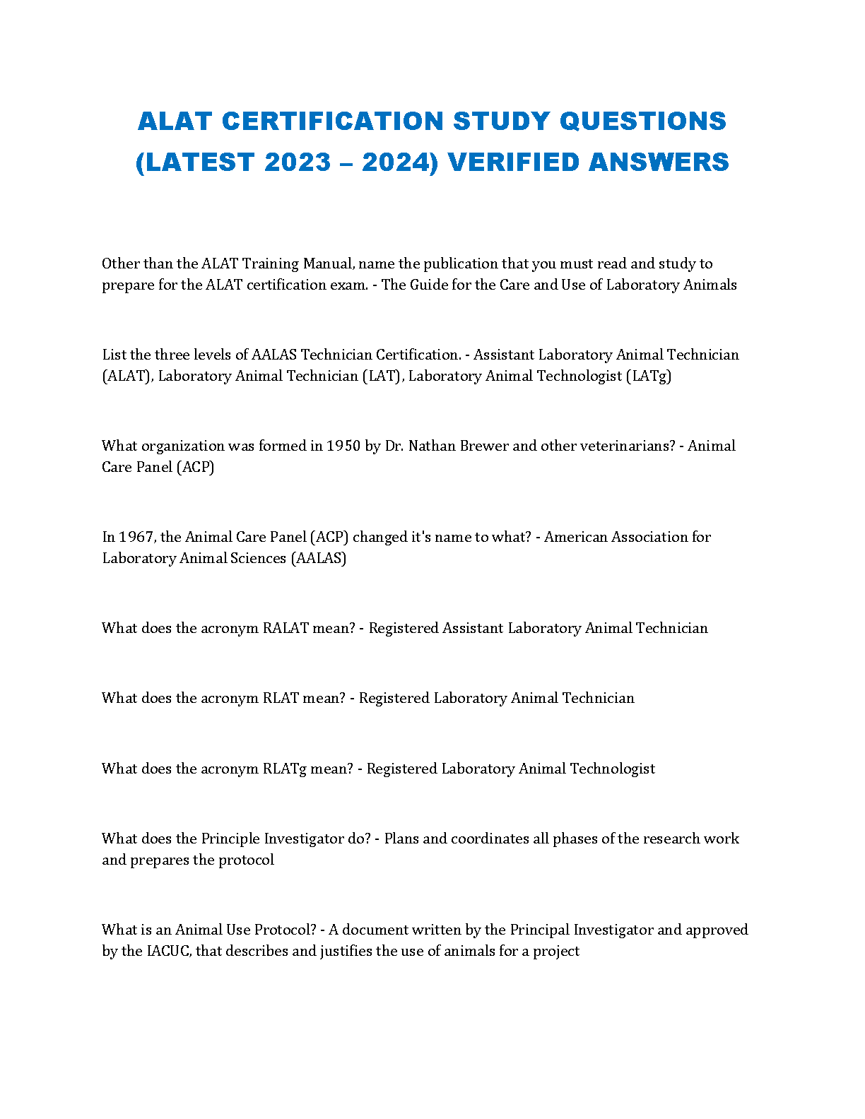 ALAT Certification Study Questions (Latest 2023 - 2024) Verified Answers: A Comprehensive Guide for Success