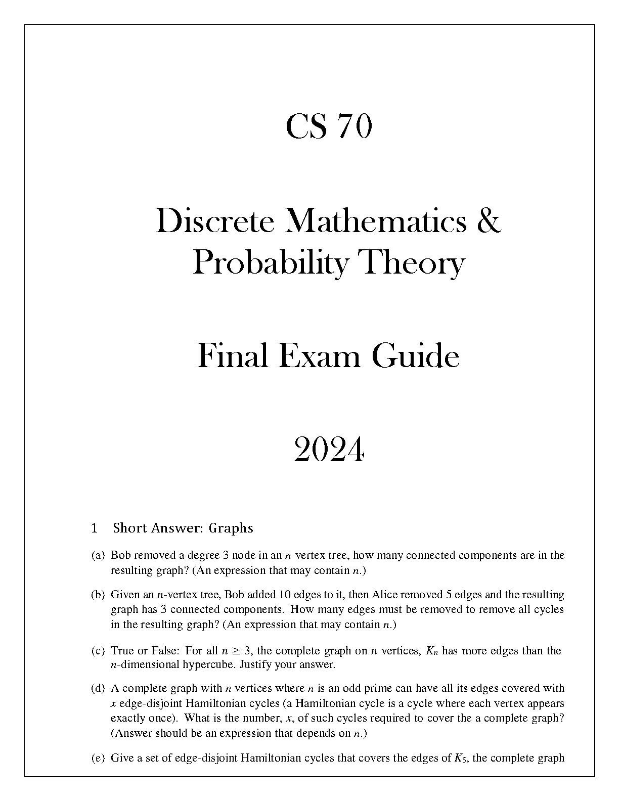 CS 70 Discrete Mathematics & Probability Theory Final Exam Guide 2024 - Ace Your Exams on the First Attempt!