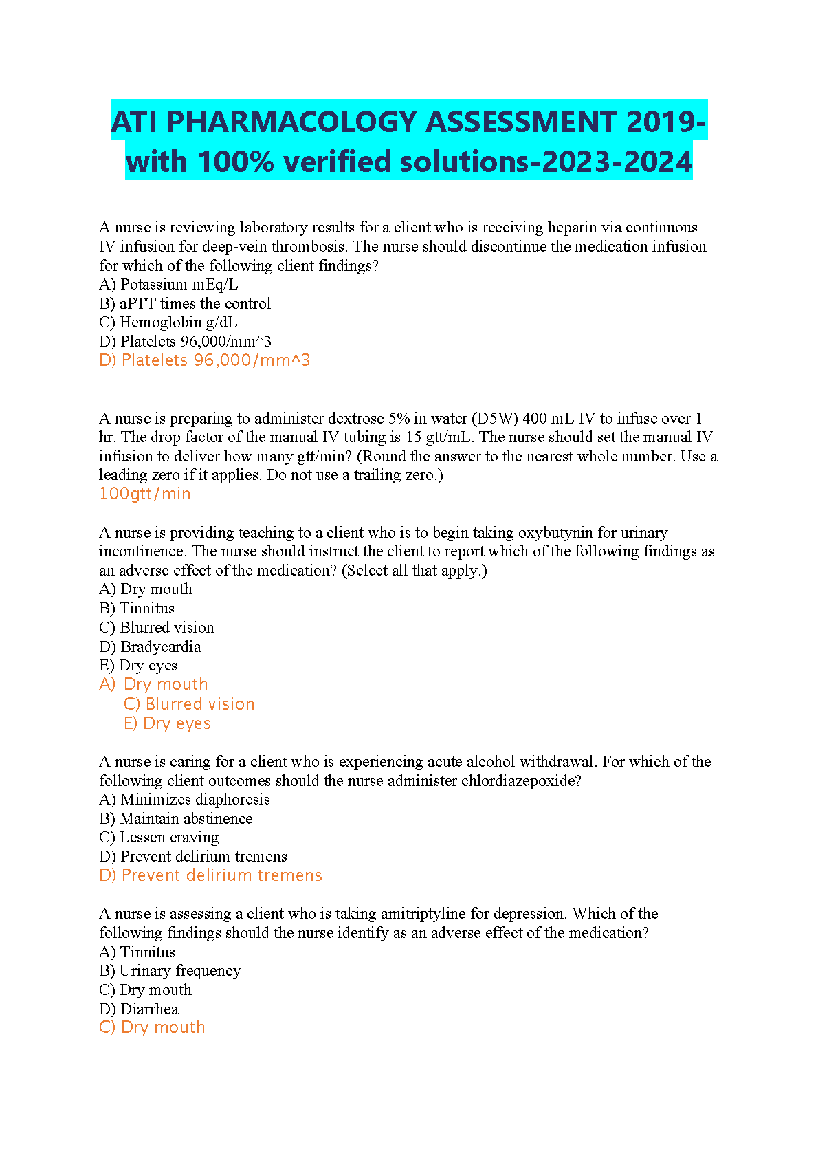 Ace your ATI Pharmacology exam with this comprehensive study guide featuring 100% verified solutions for all assessment questions. This resource is designed to help nursing students master the essential concepts of pharmacology and achieve success on their first attempt.