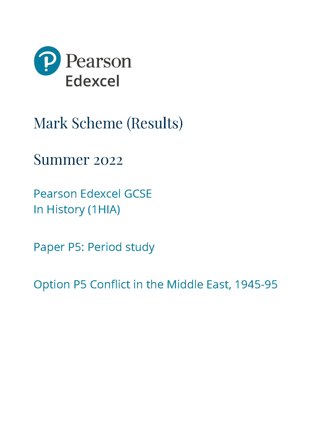 Pearson Edexcel GCSE In History (1HIA) Mark Scheme - Summer 2022 - Option P5 Conflict in the Middle East, 1945-95
