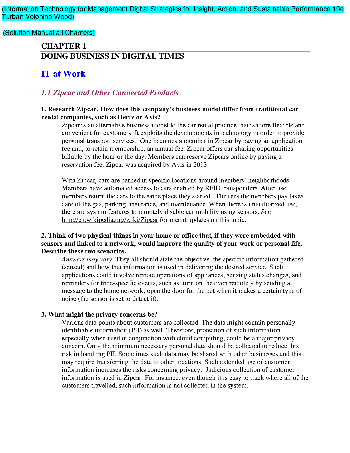 Doing Business in Digital Times, 10e Edition by Efraim Turban, David King, Jae Lee, and H. Michael Watson: Solution Manual