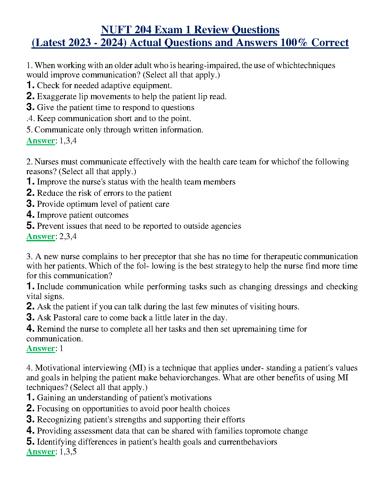 NUTF 204 Exam 1 Review Questions (Latest 2023 - 2024) Actual Questions and Answers 100% Correct by Authors