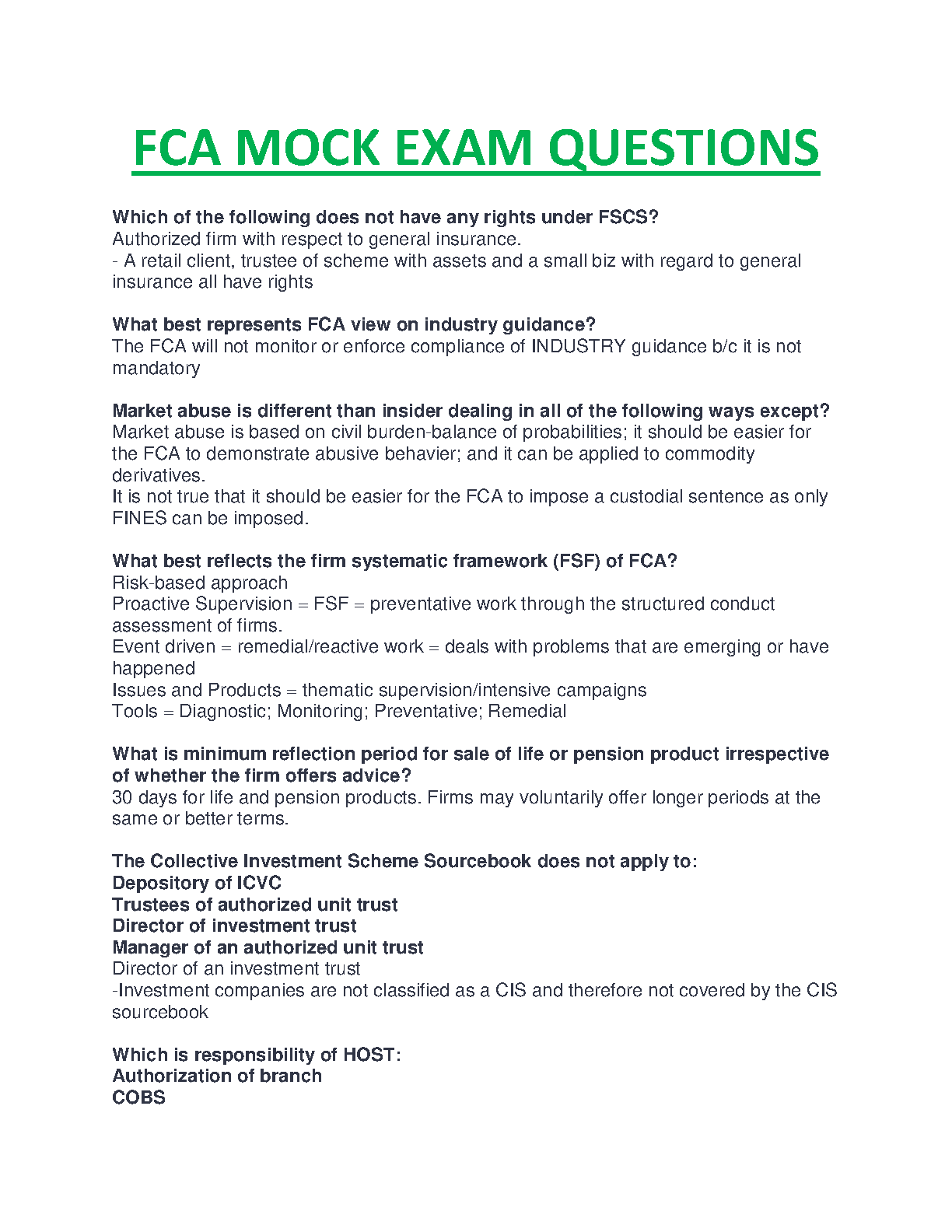 Boost your confidence and ensure exam success with this comprehensive set of FCA mock exam questions. Designed specifically for the 2024/2025 academic year, these practice questions cover all key topics and provide a realistic exam experience. Prepare thoroughly and avoid resits with this invaluable resource.