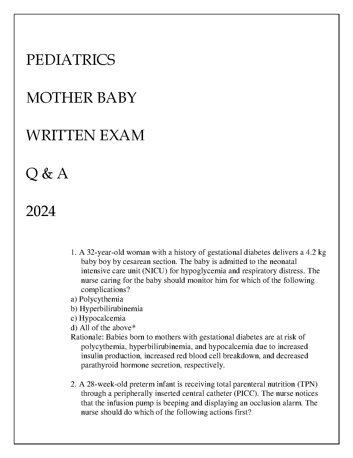 2024 Pediatrics Mother Baby Written Exam Q&A