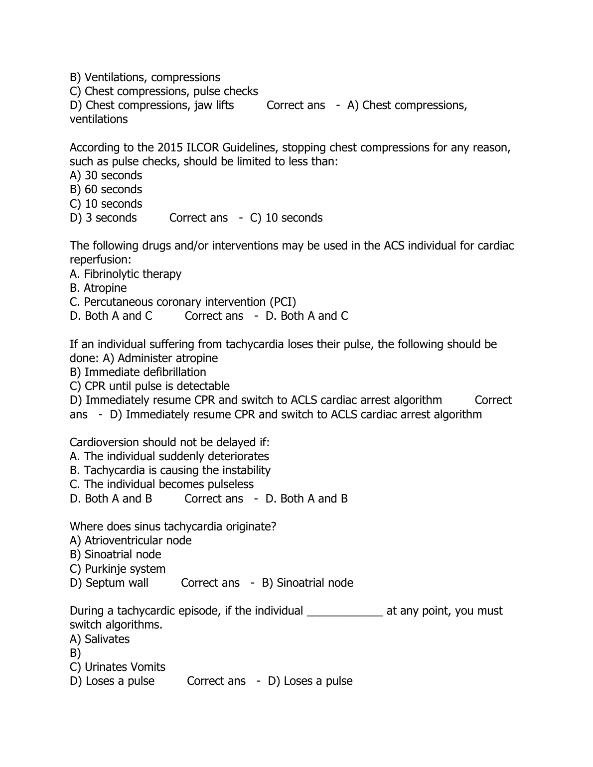 ACLS Certification Exam (99)- Questions And Answers Correctly Answered A Score