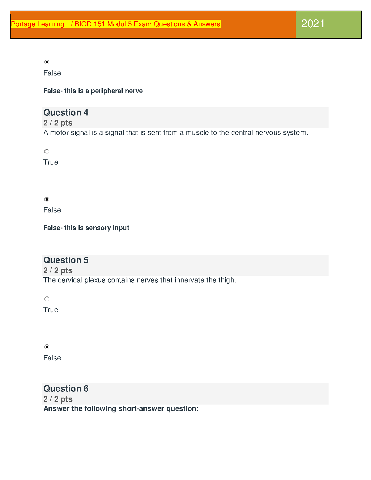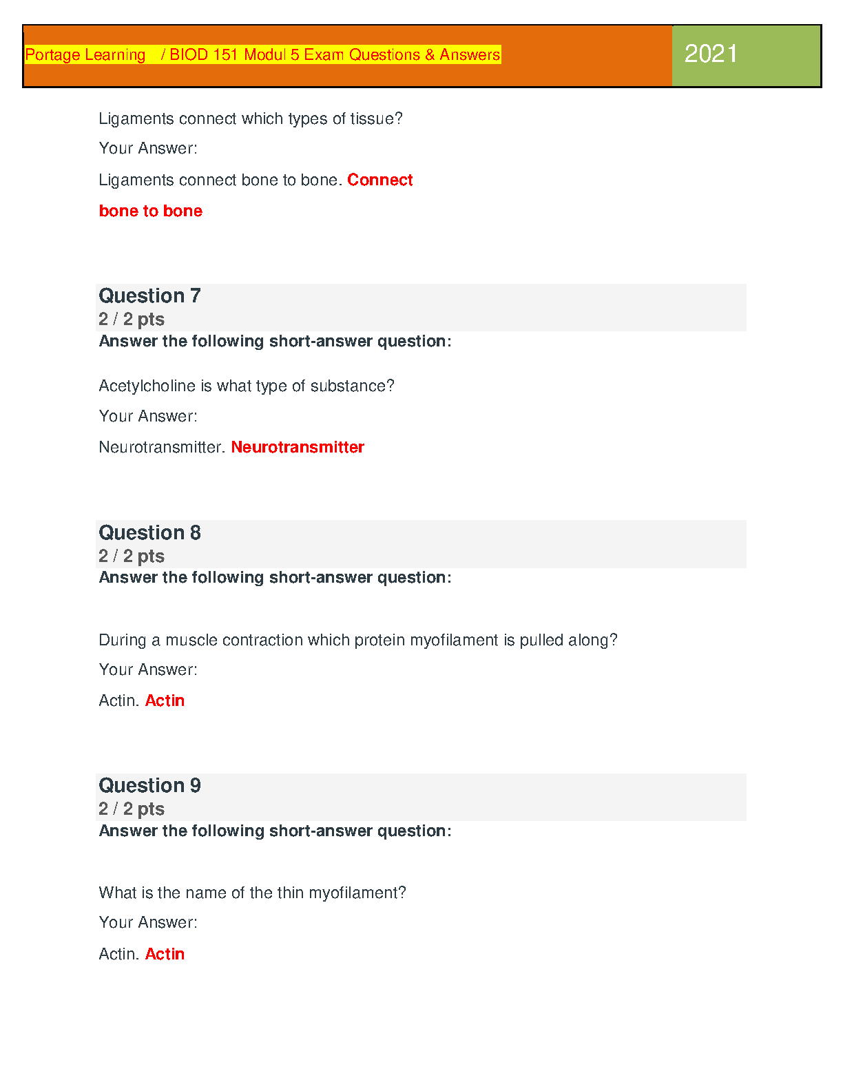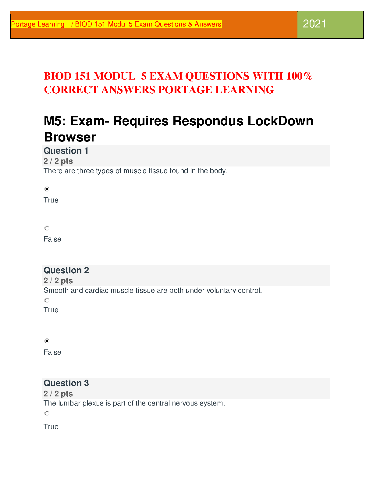 BIOD 151 Modul 5 Exam Questions with 100% Correct Answers Portage Learning - 2021 Edition