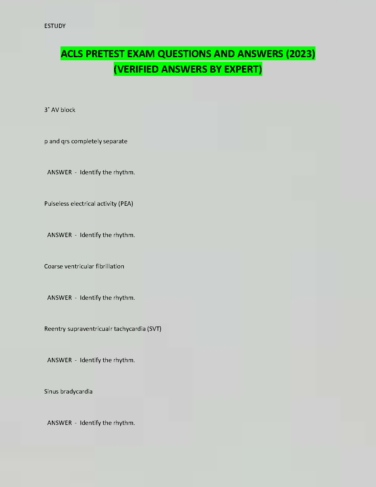 ACLS PRETEST EXAM QUESTIONS AND ANSWERS (2023) (VERIFIED ANSWERS BY EXPERT)
