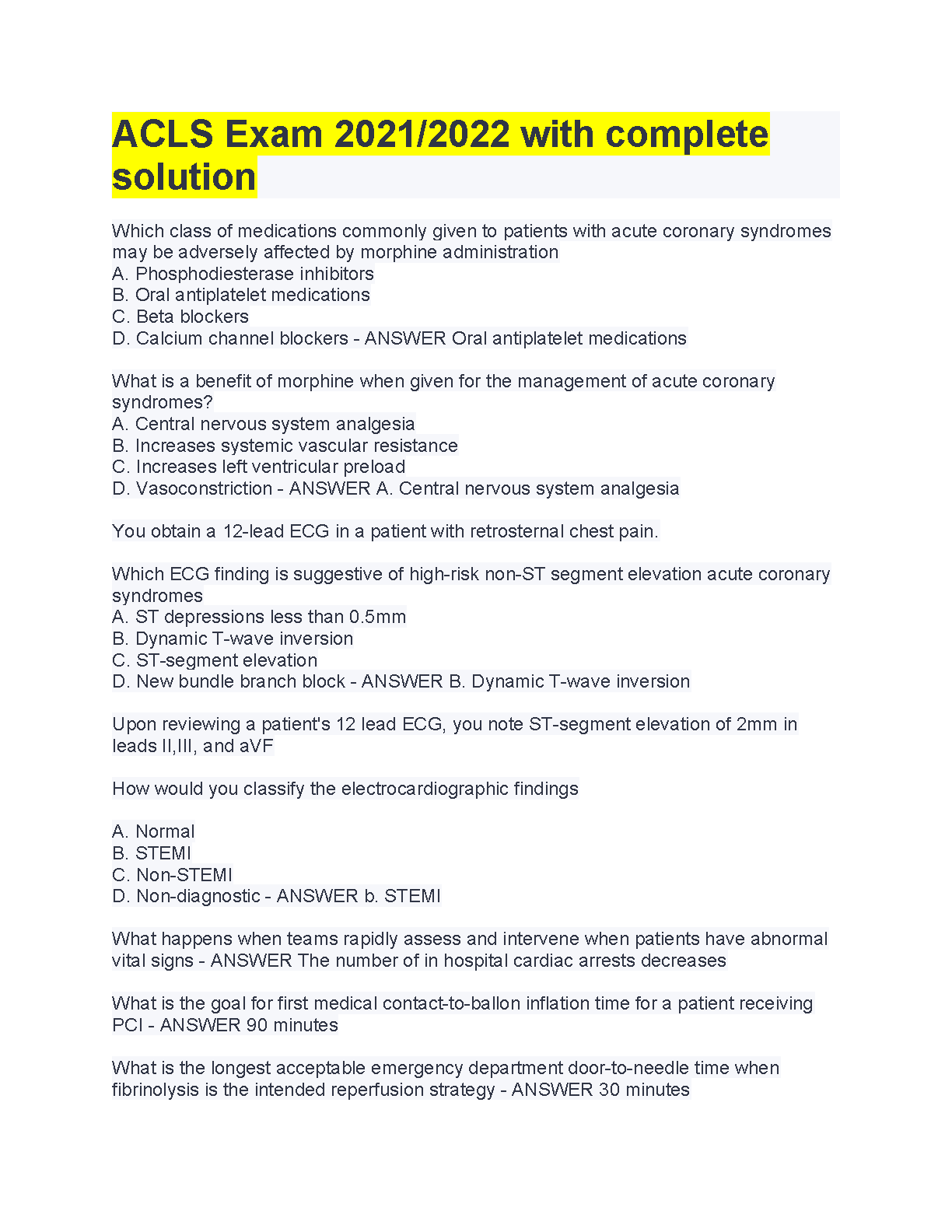 ACLS Exam 2023 with complete solution BEST RATED A+. DOWNLOAD on www.hackedexams.com INSTANTLY.