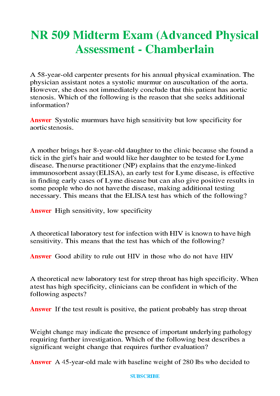 NR 509 Midterm Exam (Advanced Physical Assessment - Chamberlain) - 2024/2025 Edition: Ace Your Exam on the First Attempt!