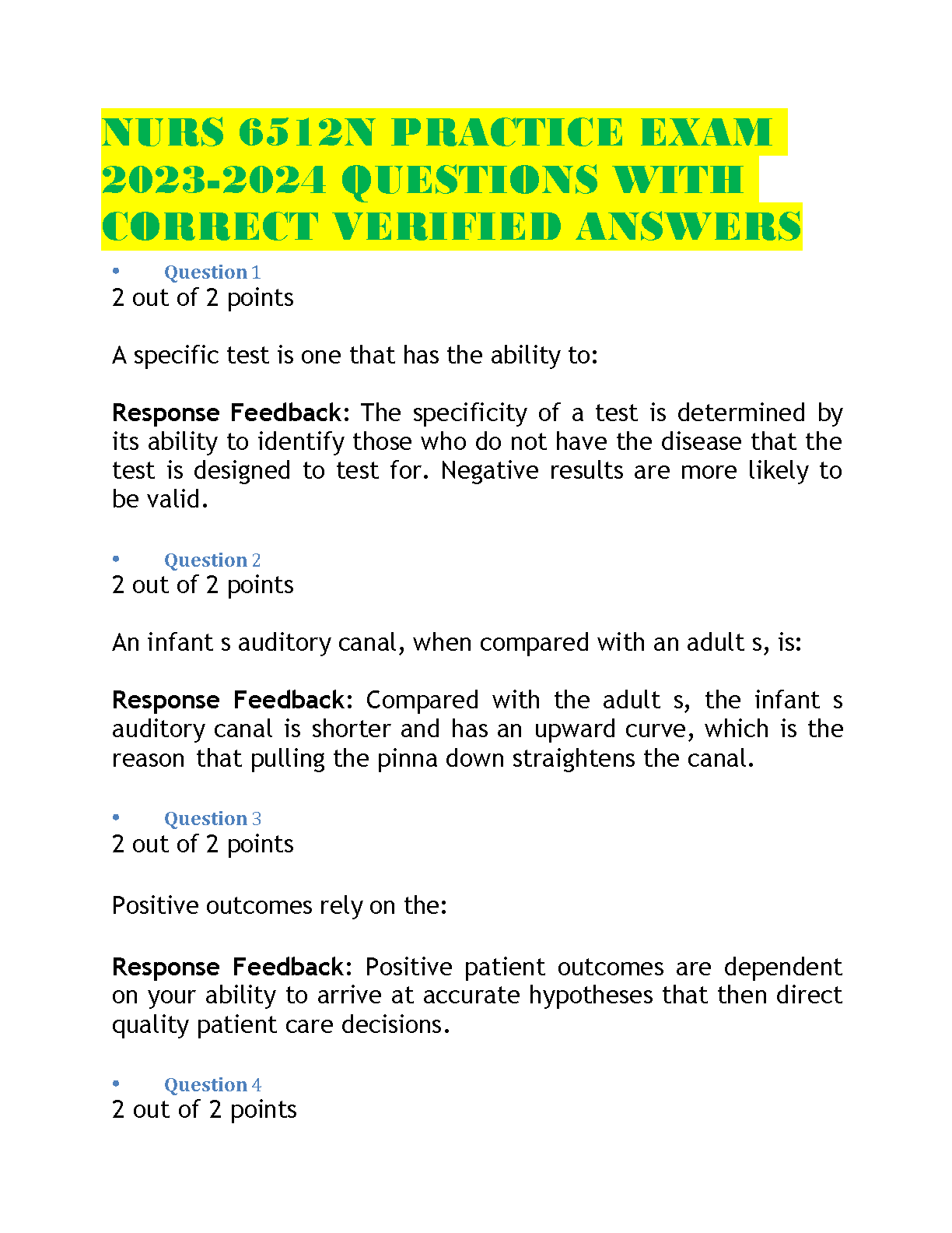 NURS 6512N Practice Exam 2023-2024 Questions with Correct Verified Answers by [Author name]