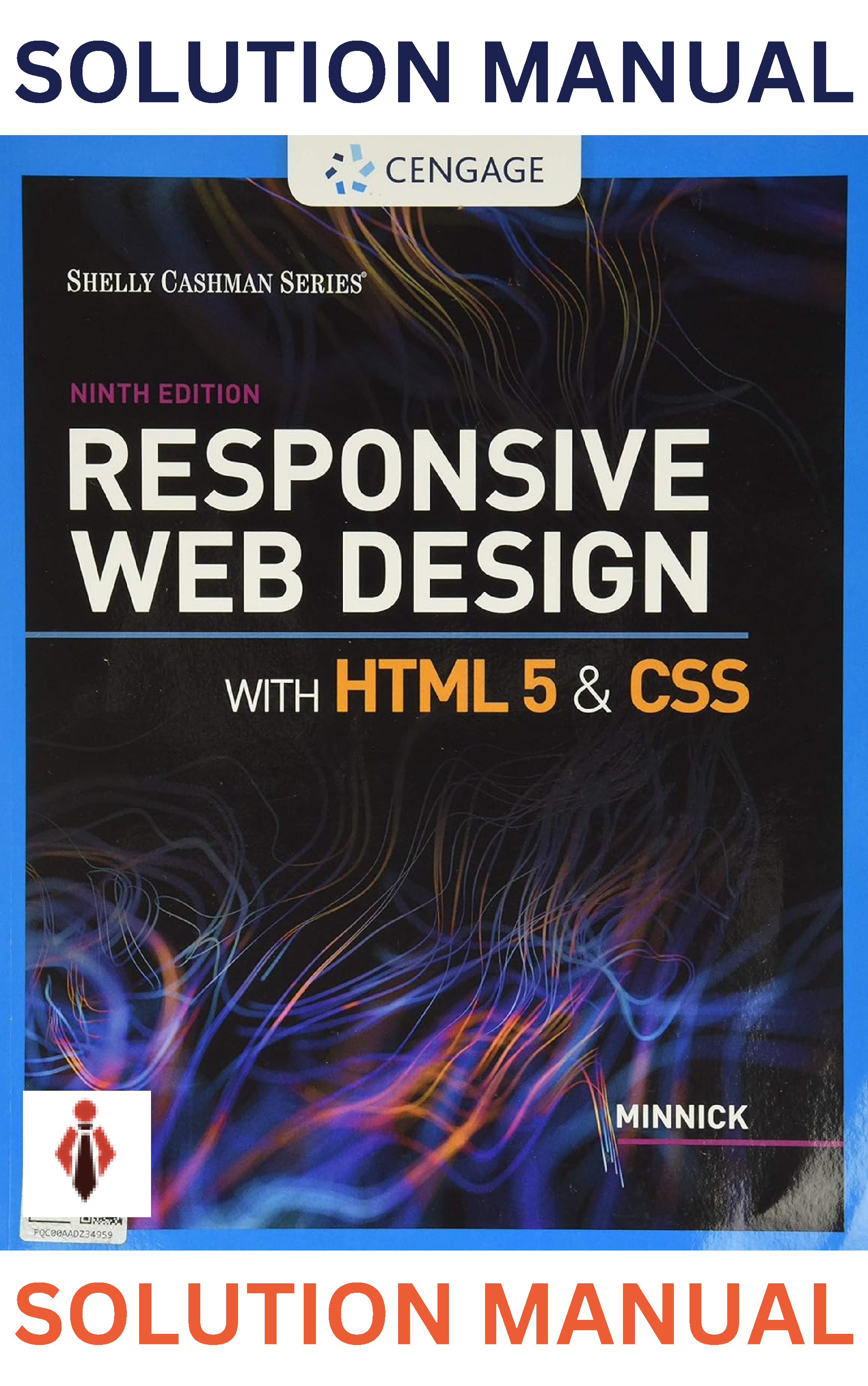 Ace your Responsive Web Design course with this comprehensive solution manual! This resource provides detailed solutions to all exercises and activities in the 9th edition of Responsive Web Design by Shelley Cashman and Stephen Minnick.