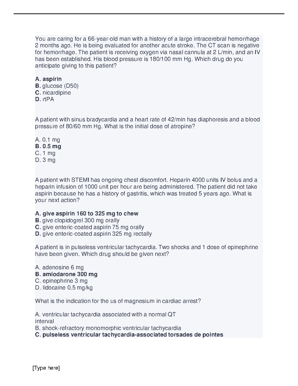ACLS PRETEST WITH CORRECT ANSWERS 2023