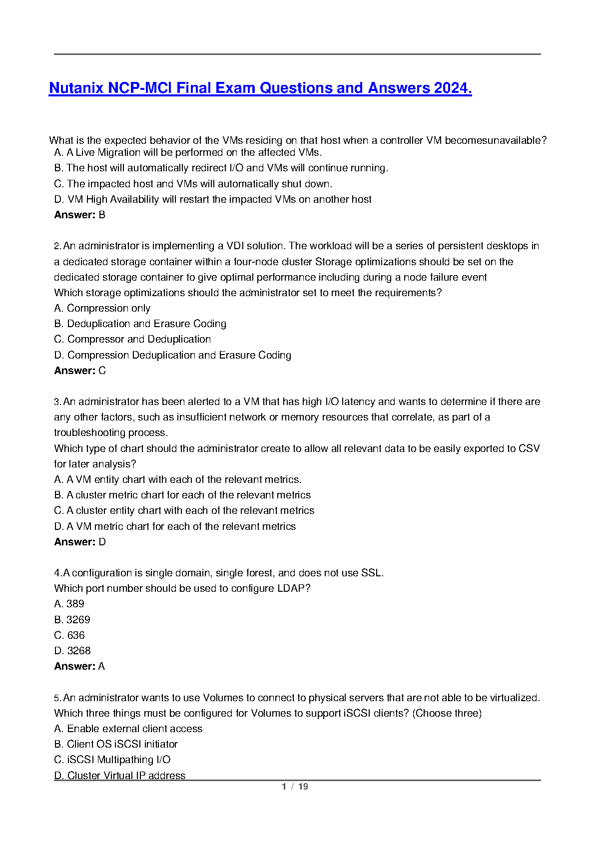 This comprehensive guide provides a collection of Nutanix NCP-MCI final exam questions and answers, meticulously crafted to cover the latest syllabus. Master essential concepts, practice real-world scenarios, and gain the confidence you need to excel in your exam on the first try, eliminating the need for resits.