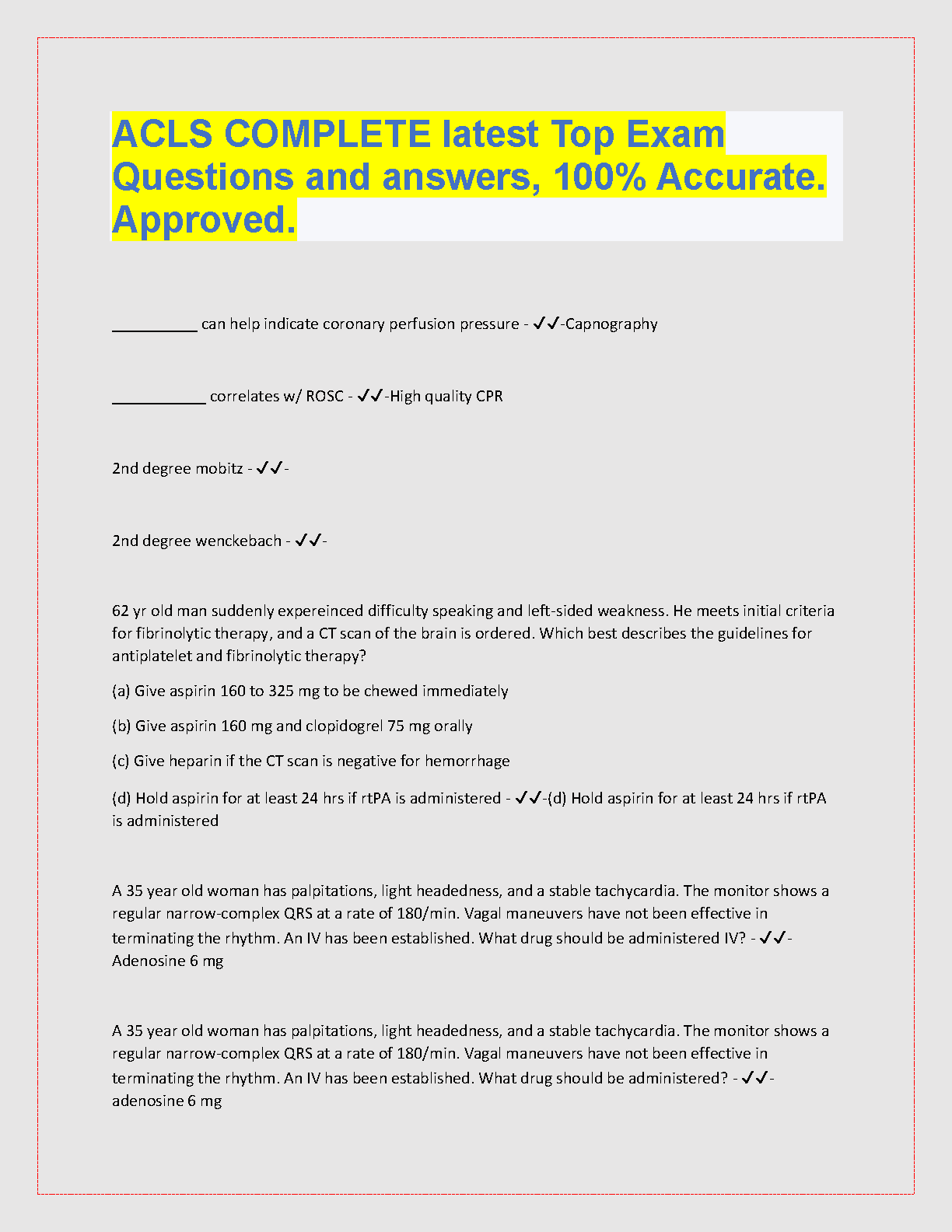 ACLS COMPLETE latest Top Exam Questions and answers, 100% Accurate. Approved.. DOWNLOAD on www.hackedexams.com INSTANTLY.