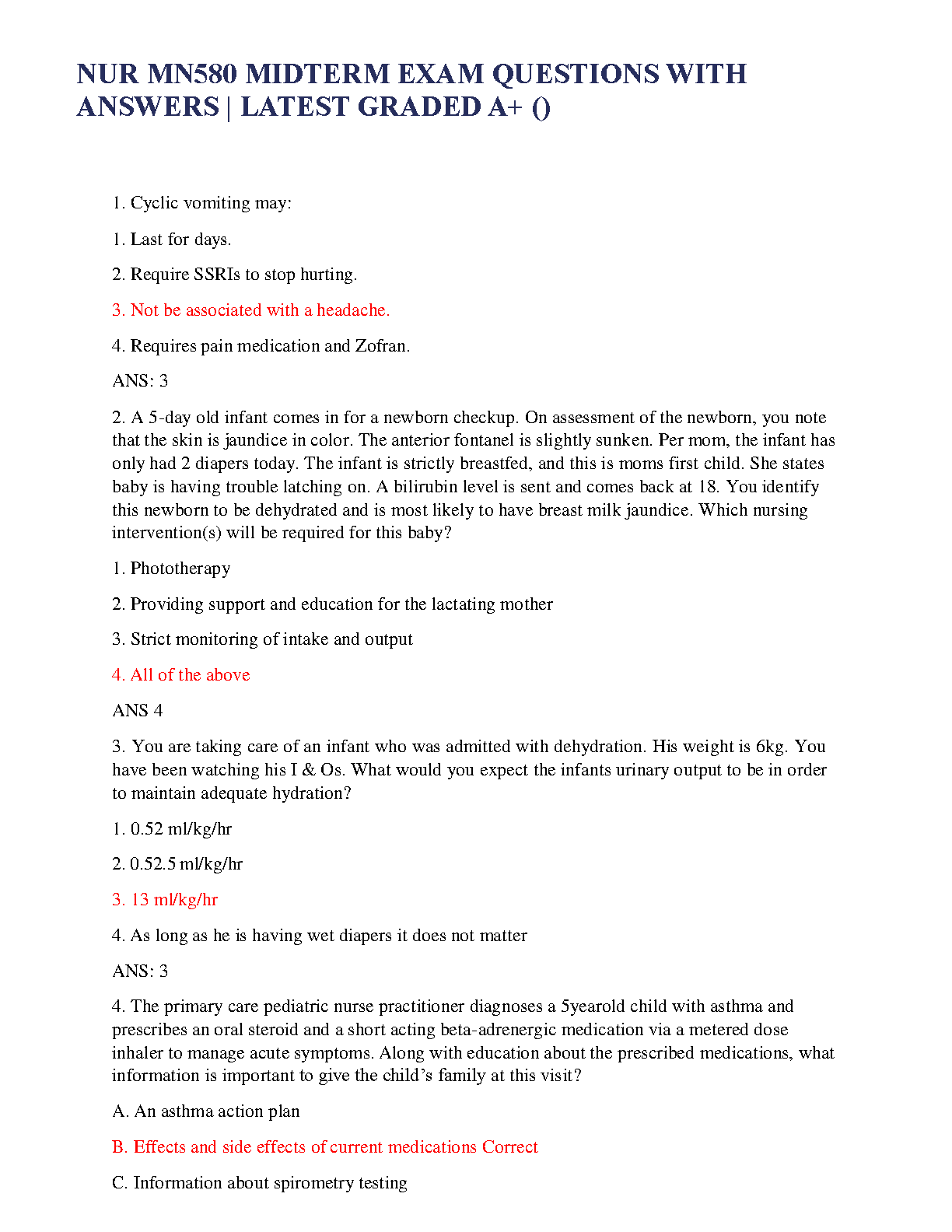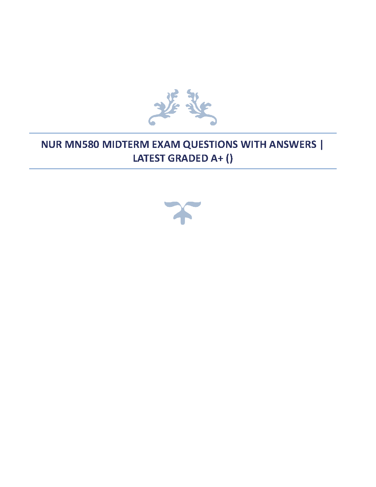 Conquer your NUR MN580 Midterm exam with confidence! This comprehensive study guide provides you with up-to-date exam questions and detailed solutions, ensuring a strong understanding of the course material. Designed to help you ace your exam on the first attempt and avoid resits.