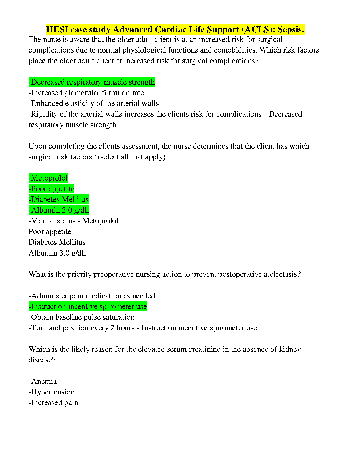 HESI case study Advanced Cardiac Life Support (ACLS): Sepsis. 2023