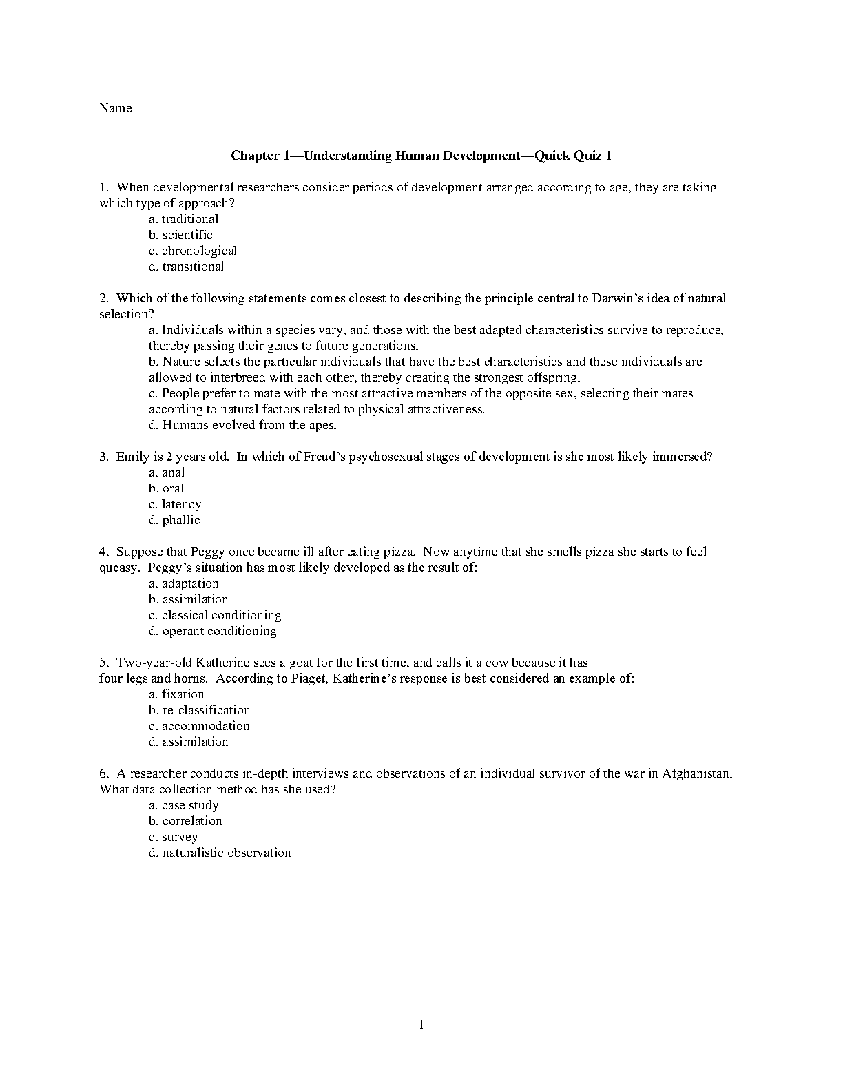 Test Bank for Understanding Human Development 4th Edition by Wendy Dunn and Grace Craig
