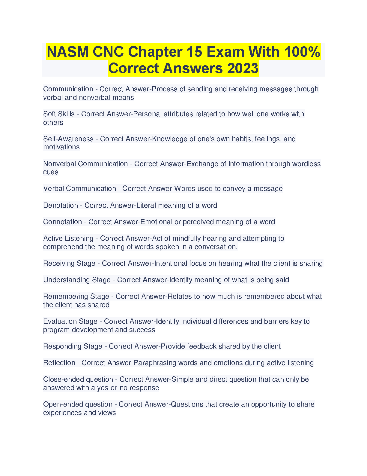 Pass your NASM CNC Chapter 15 Exam with 100% accuracy using this comprehensive guide. This resource provides accurate answers for all the exam questions.