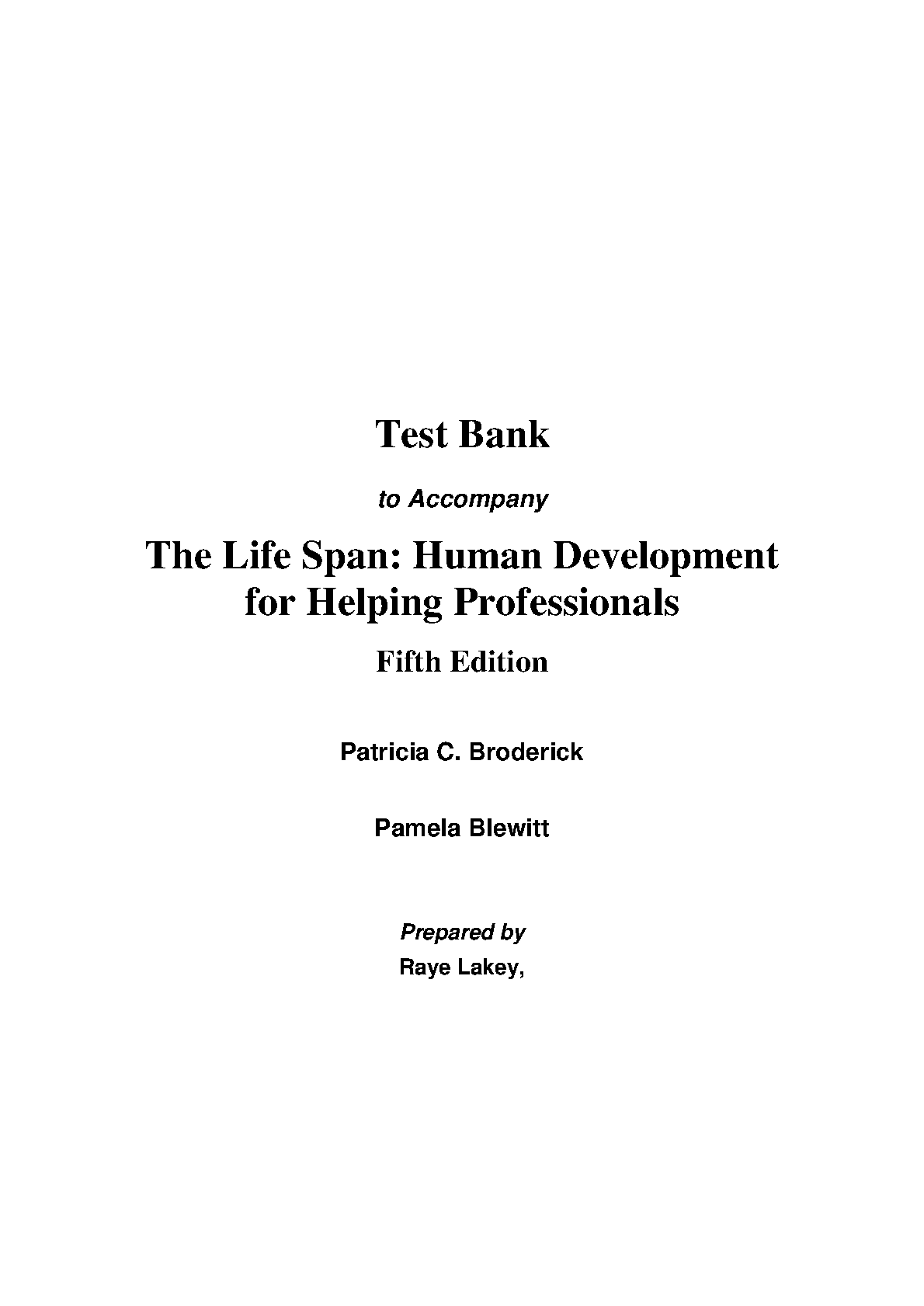 The Life Span 5th Edition Test Bank: Human Development for Helping Professionals by Patricia C. Broderick and Pamela Blewitt