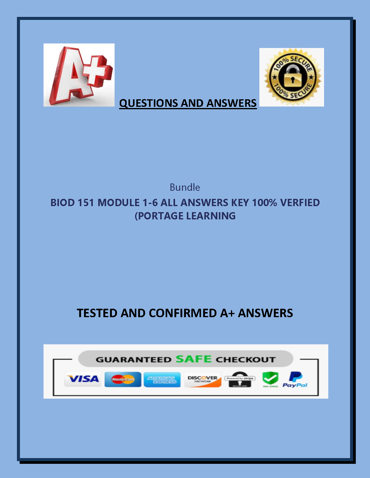 BIO 151 Module 1-6 All Answers Key 100% Verified - Portage Learning