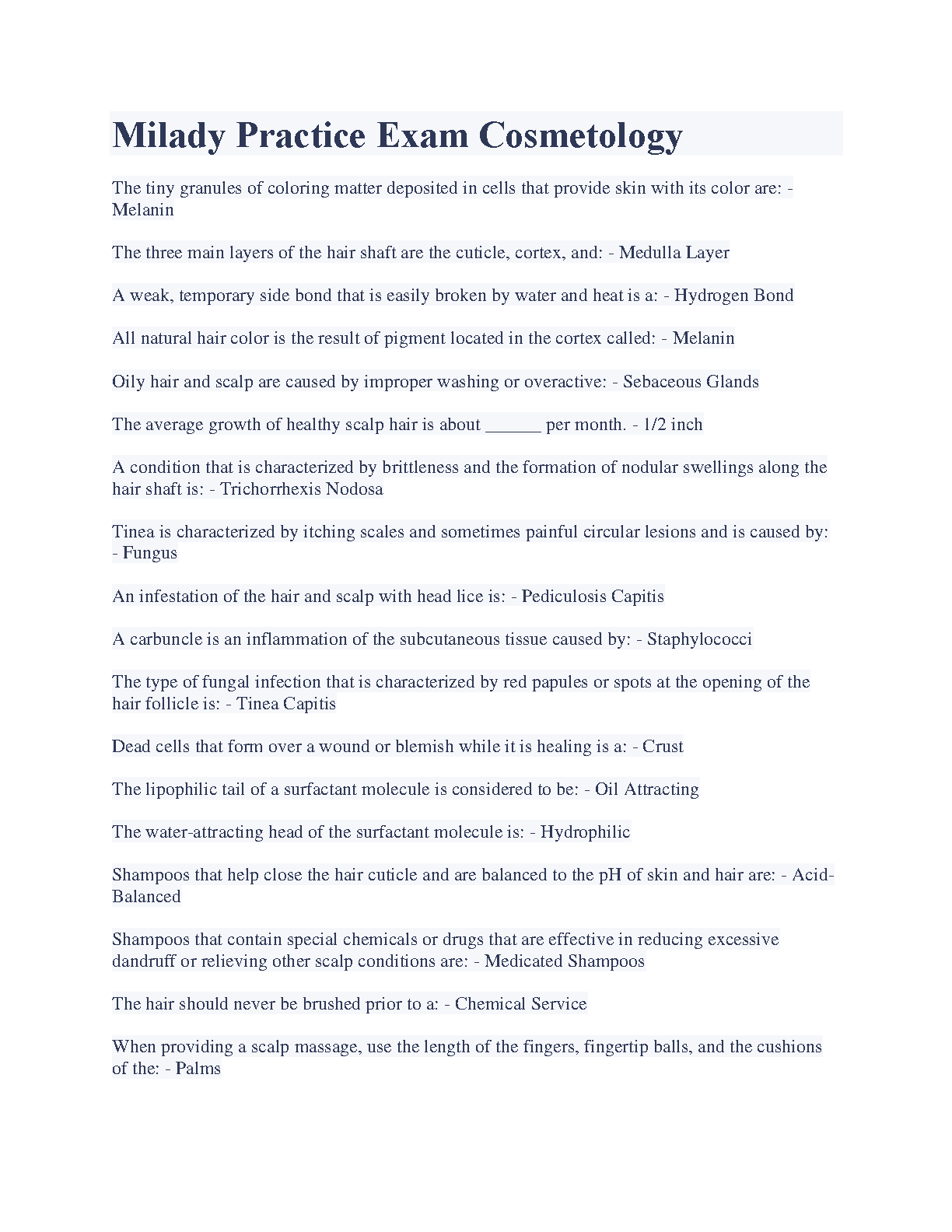 Milady Standard Cosmetology Practice Exam, 10th Edition by Milady, (2024-2025) - Pass Your Exam On The First Attempt!