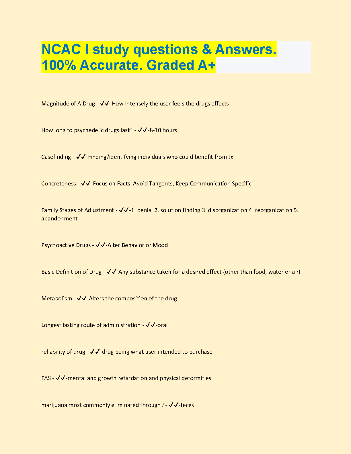 NCAC Study Questions & Answers: 100% Accurate. Graded A+ (2024-2025 Edition)