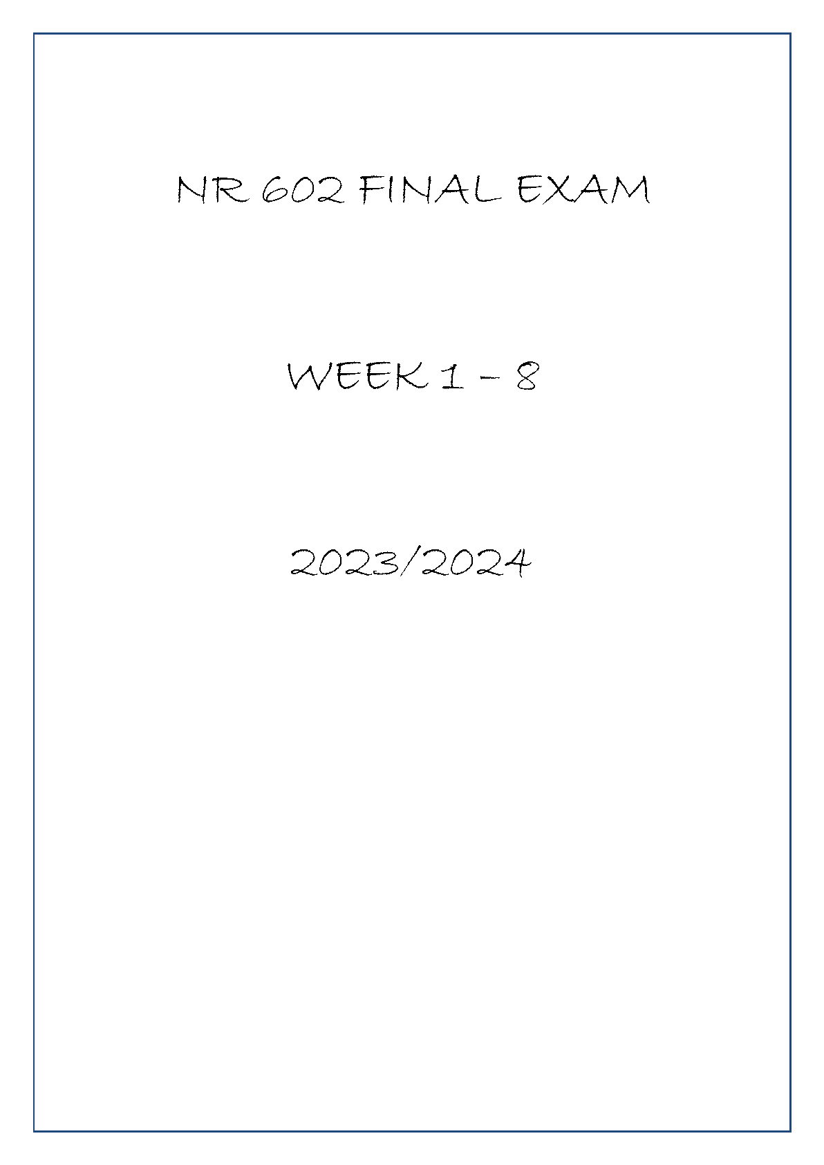 NR 602 Final Exam Study Guide - 2024/2025 Edition - Ace Your Exam on the First Attempt