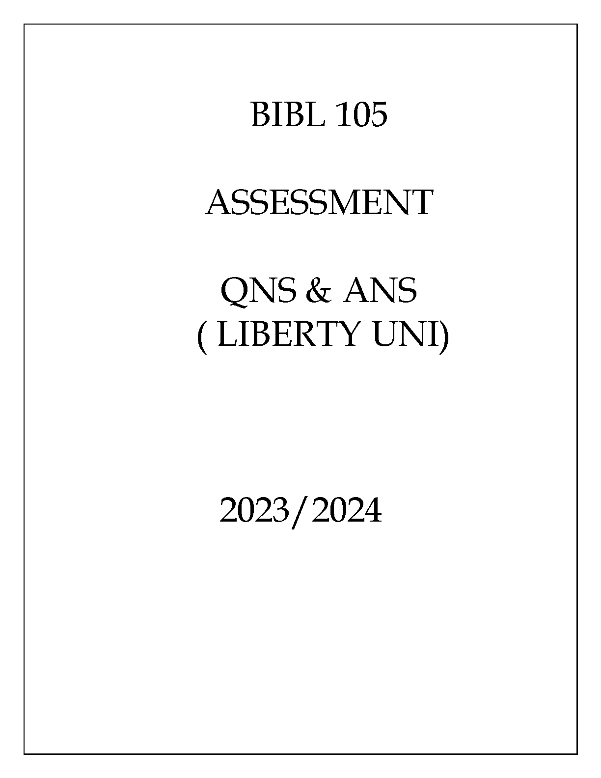 BIBL 105 Assessment Q&A for Liberty University (2023/2024 Edition)