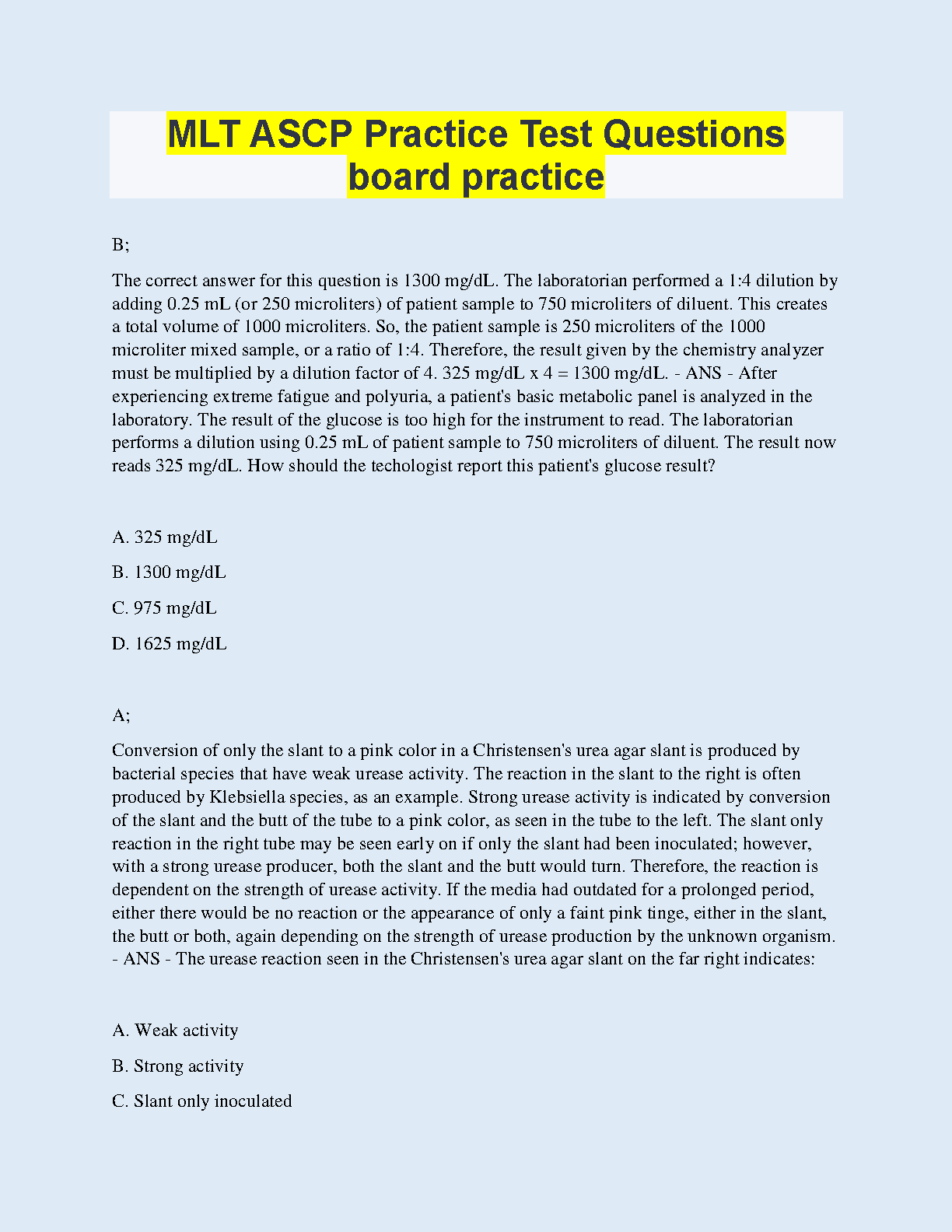 MLT ASCP Practice Test Questions board practice 2023