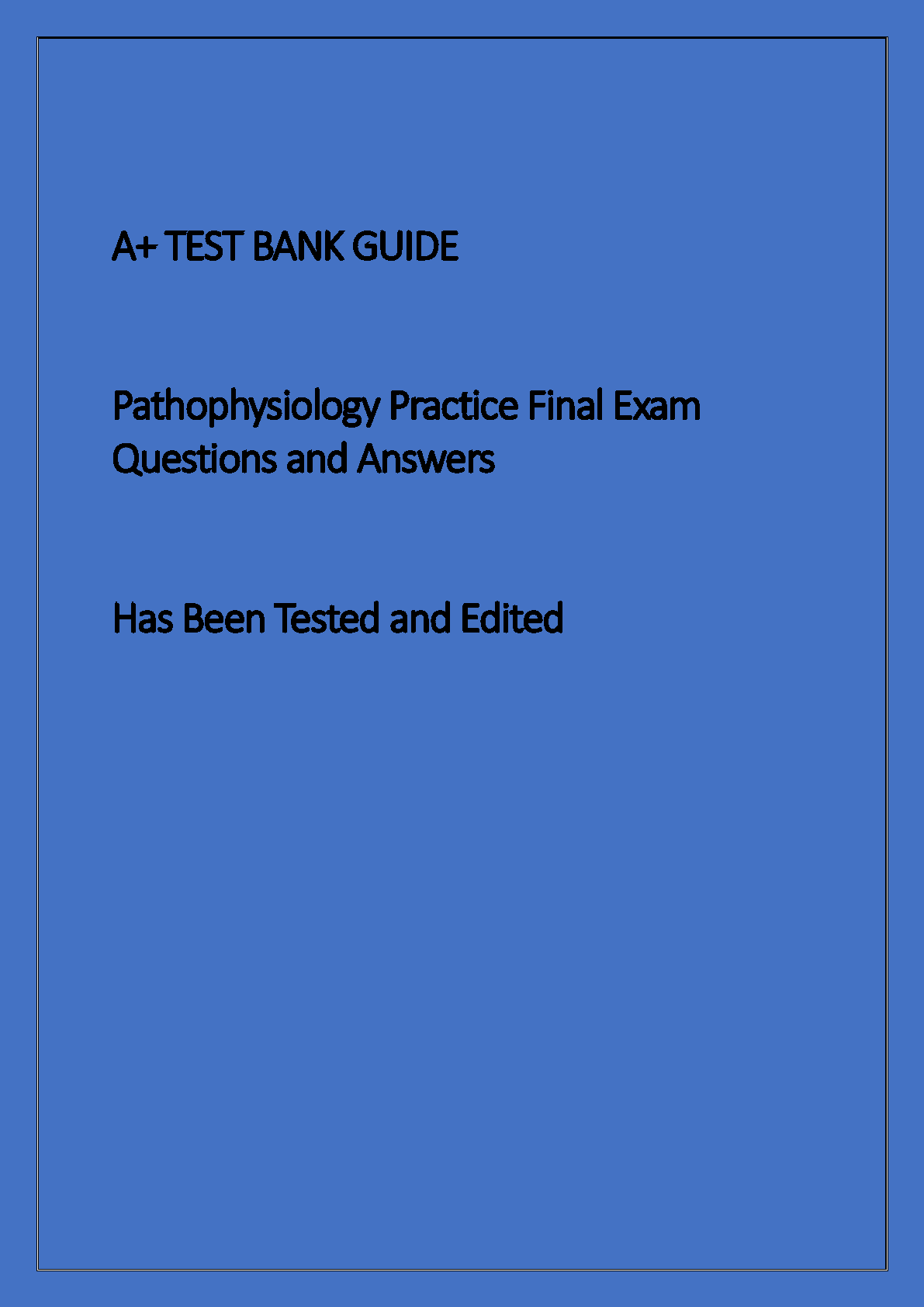 This comprehensive Test Bank Guide for Pathophysiology, packed with practice final exam questions and answers, is the key to acing your exam on the first attempt. Skip the stress of resits with this meticulously tested and edited guide, designed to boost your confidence and understanding.