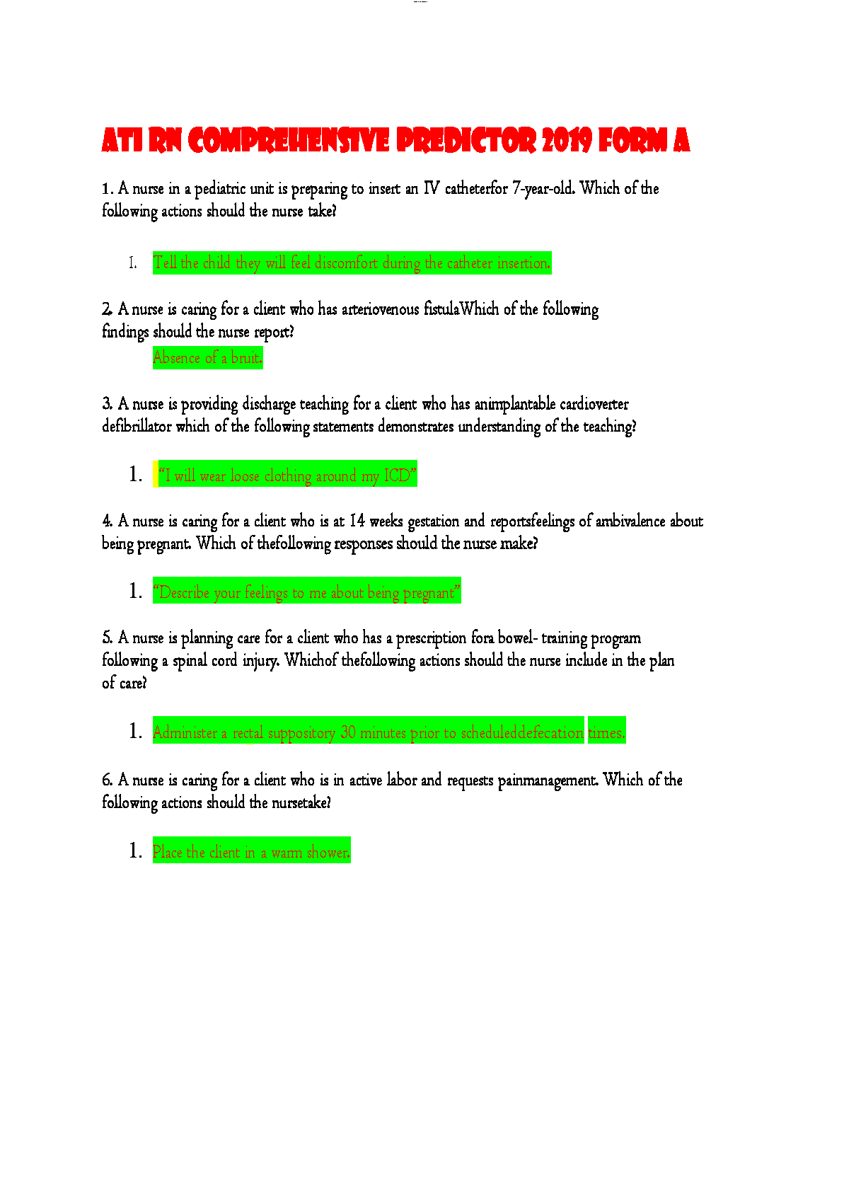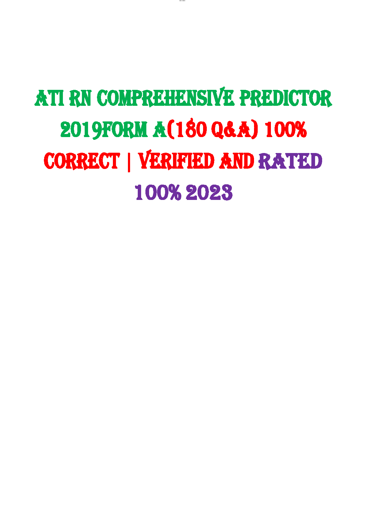 ATI RN Comprehensive Predictor 2019 Form A (180 Q&A) 100% Correct - Verified and Rated 100% 2023 - Ace Your Nursing Exams on the First Attempt!