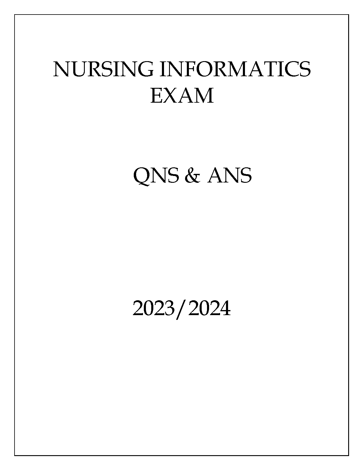 Nursing Informatics Exam Questions and Answers 2023/2024 Edition