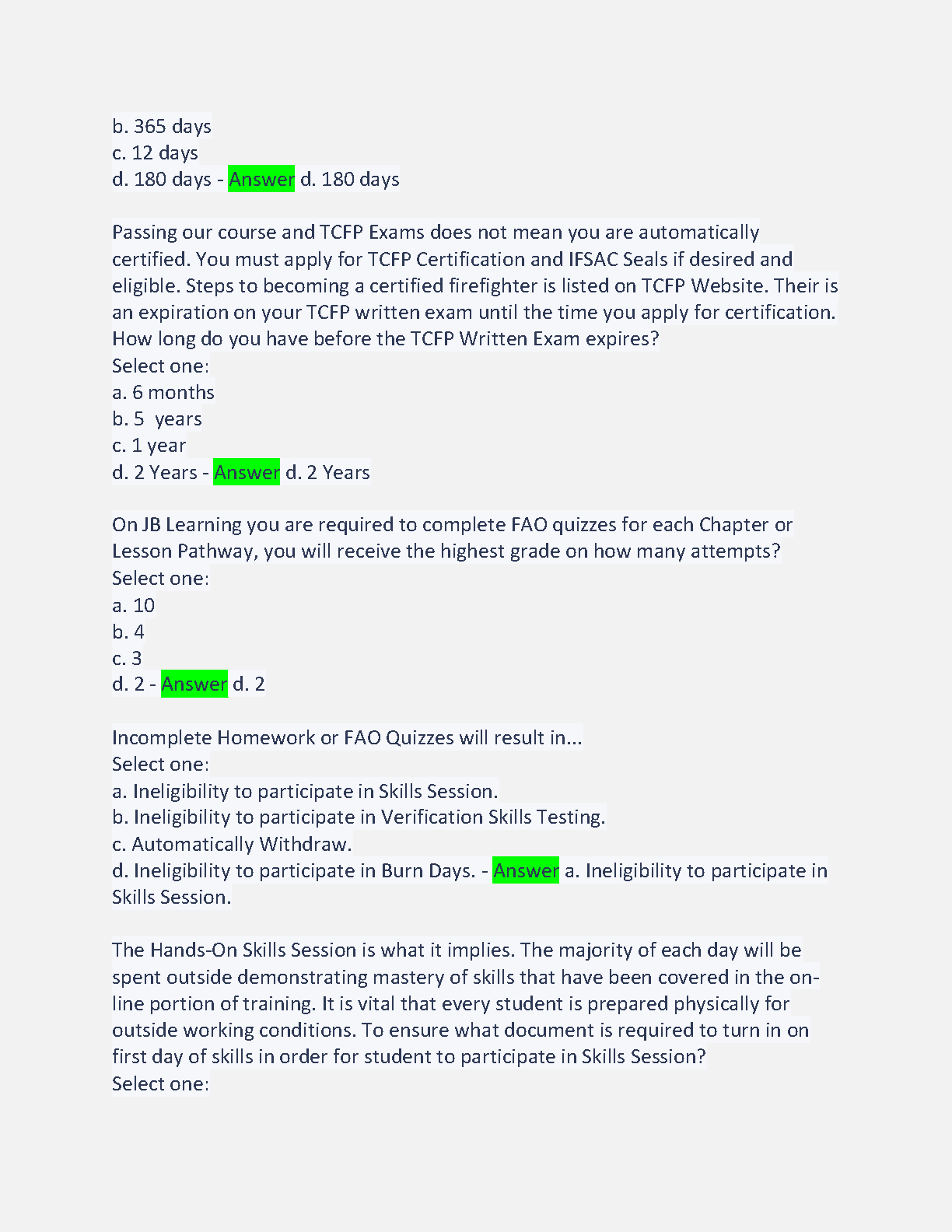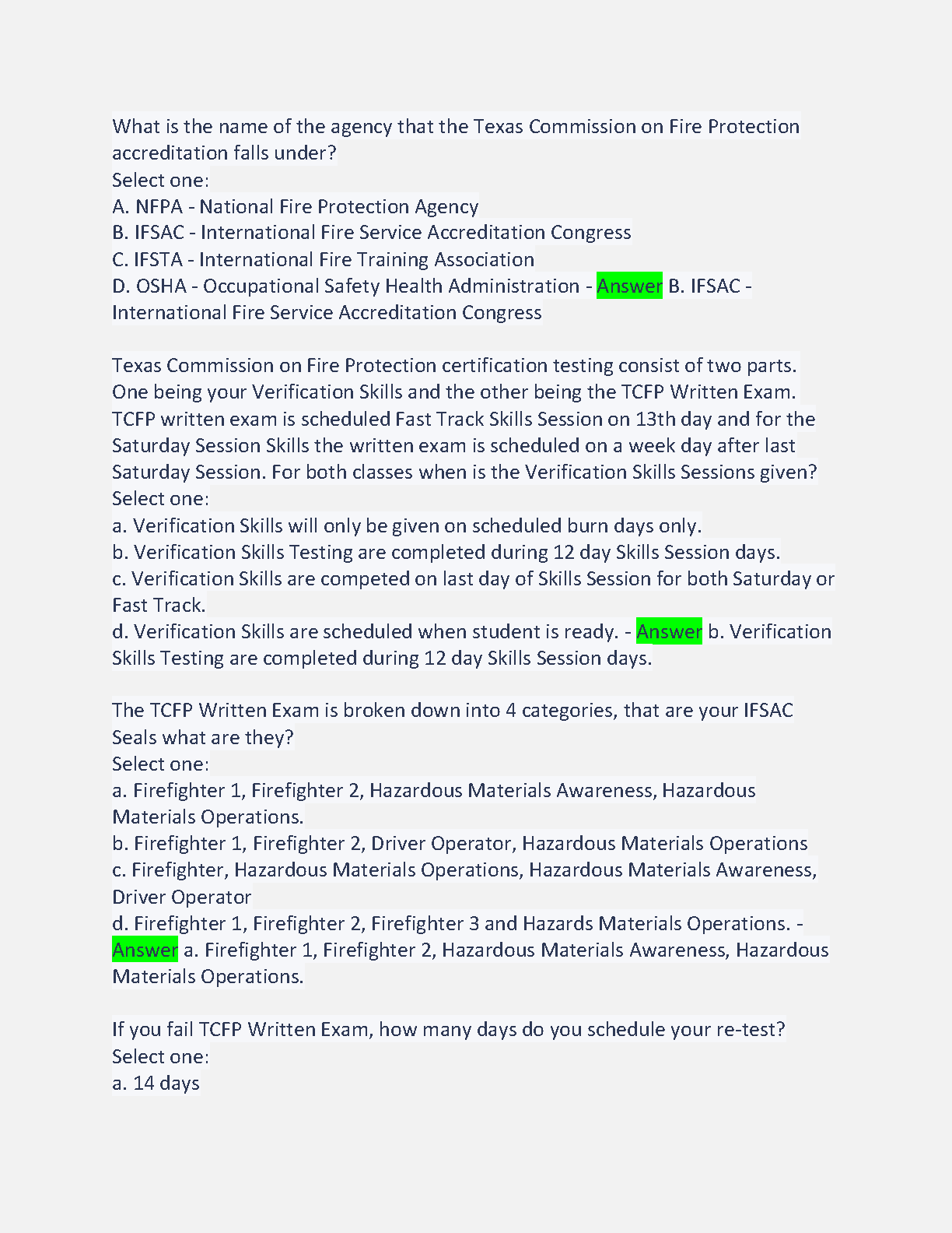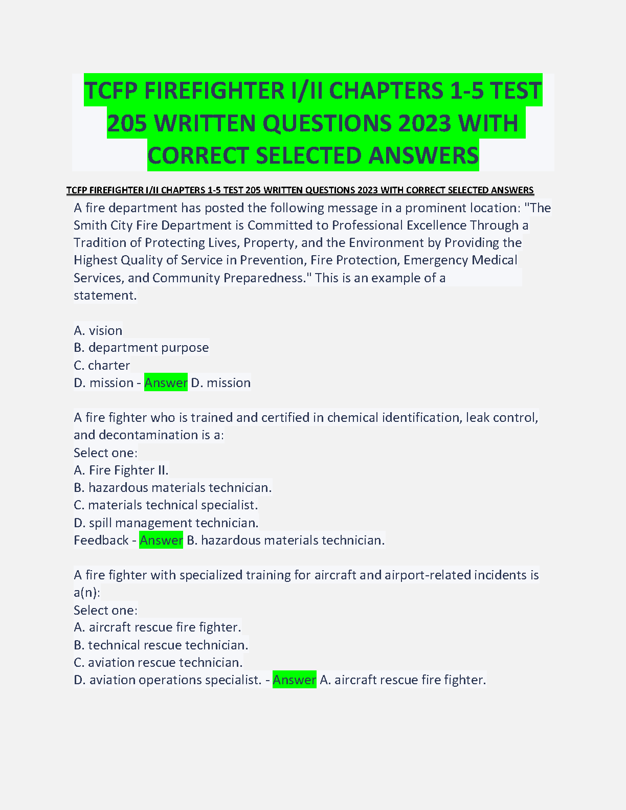 TCFP Firefighter I/II Chapters 1-5 Test 205 Written Questions 2023 With Correct Selected Answers - Complete Study Guide for Success