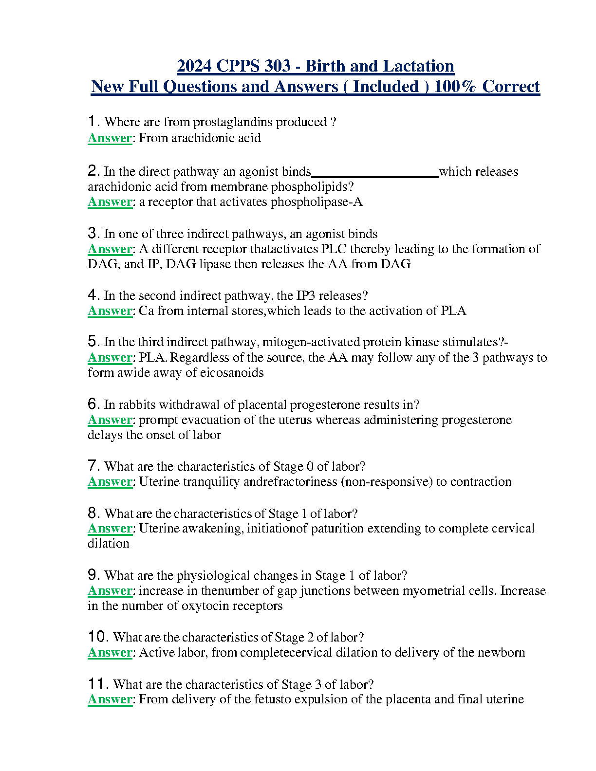 2024 CPPS 303 - Birth and Lactation New Full Questions and Answers ( Included ) 100% Correct