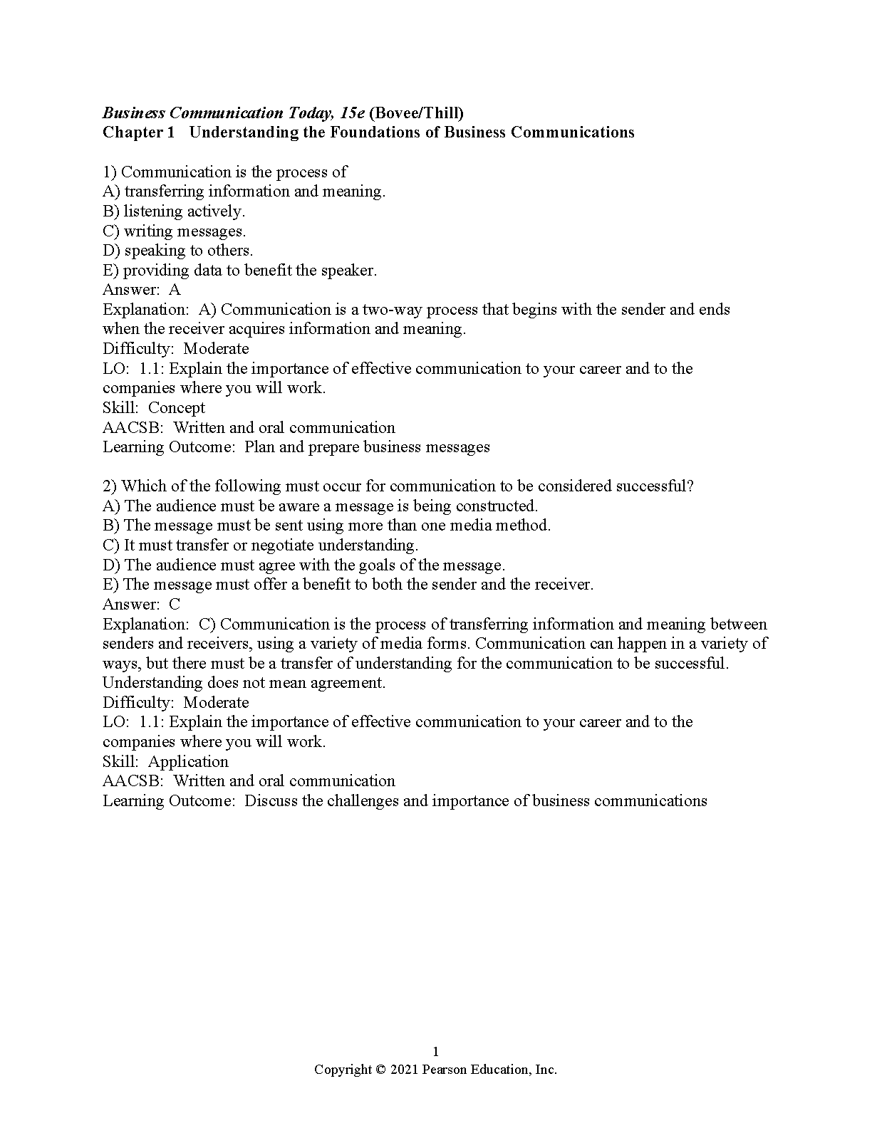 Ace your Business Communication Today course with our comprehensive test bank. This resource, designed for the 15th Edition of the textbook by Courtland Bovee and John Thill, provides you with a wealth of practice questions to help you master the concepts and confidently tackle your exams. Boost your understanding and improve your performance - get ready to pass on the first try!