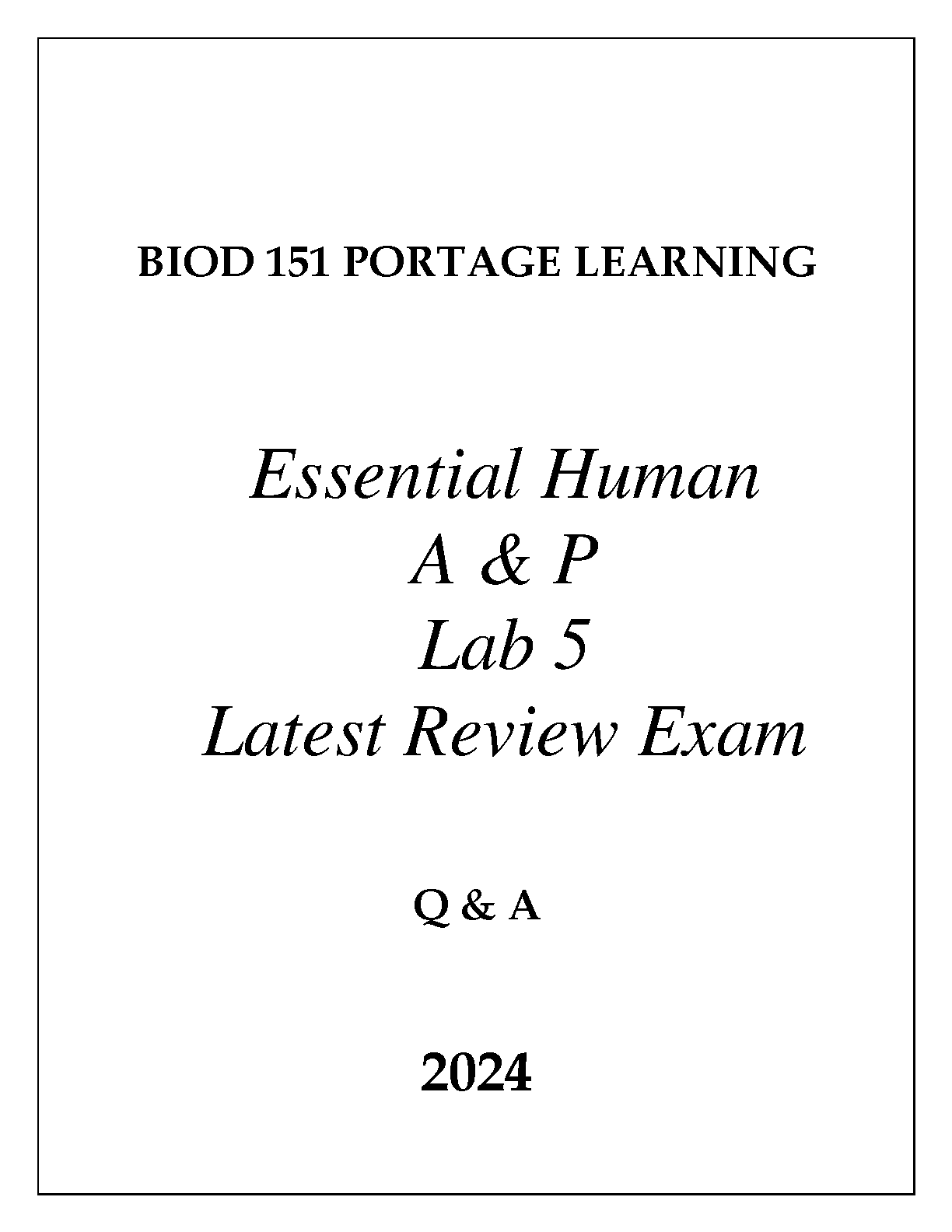 Essential Human Anatomy & Physiology Lab 5 Review Exam Q&A 2024 Edition by Elaine N. Marieb, Katja Hoehn