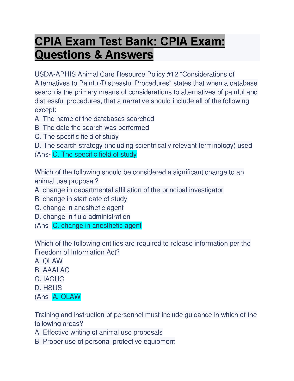 CPIA Exam Test Bank: CPIA Exam Questions & Answers