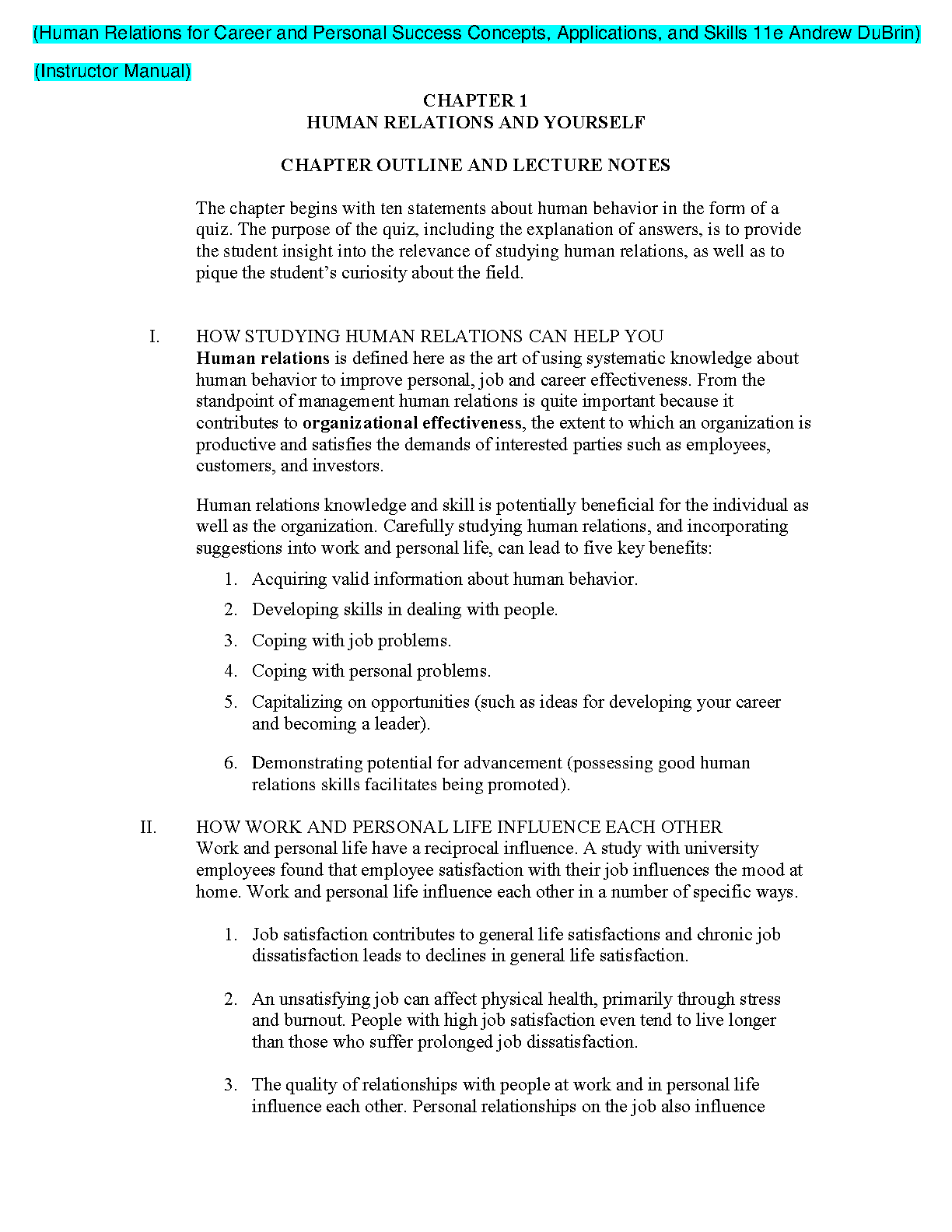 Human Relations for Career and Personal Success: Concepts, Applications, and Skills 11e by Andrew Dubrin