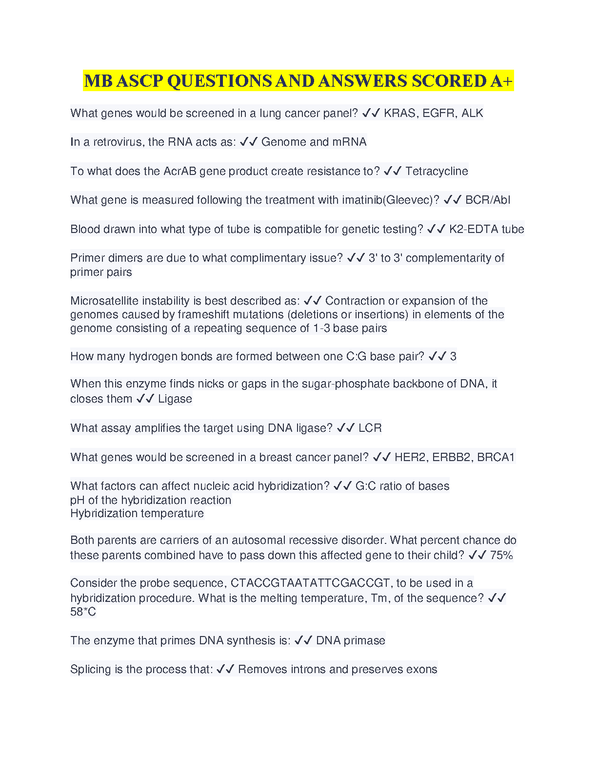 MB ASCP QUESTIONS AND ANSWERS SCORED A+ 2023