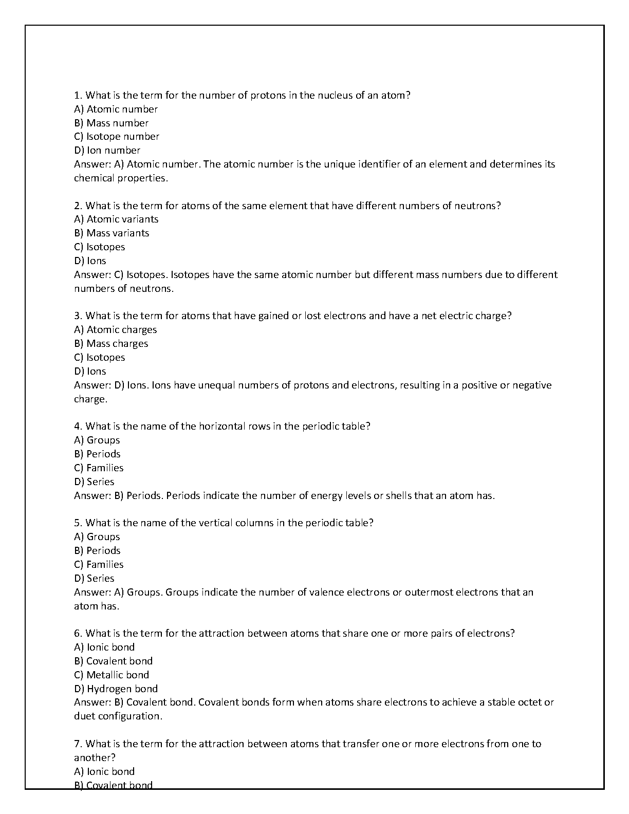 ATI TEAS Version 7 Chemistry Practice Questions and Answers with Rationales 2024/2025
