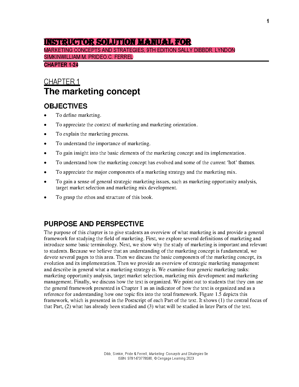 Marketing Concepts & Strategies: Instructor's Solution Manual, 9th Edition by Dibb, Simkin, Pride & Ferrell