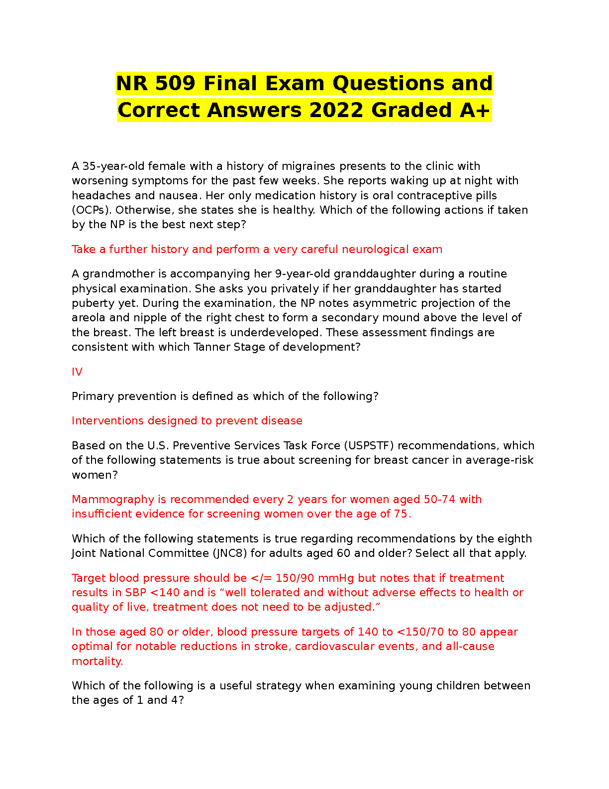Looking for a comprehensive study guide to ace your NR 509 final exam? This resource provides a collection of final exam questions and answers, covering key concepts and topics. These practice questions are carefully curated to align with the most recent exam standards, ensuring you are well-prepared to pass on your first attempt.