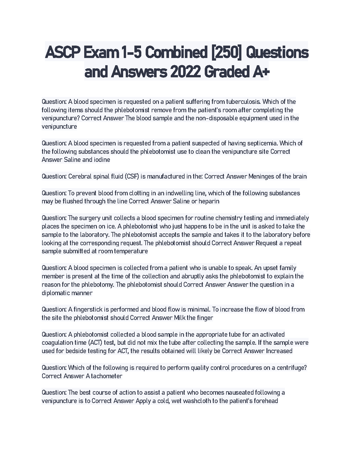 ASCP Exam 1-5 Combined [250] Questions and Answers 2022/2023 Graded A+ . DOWNLOAD on www.hackedexams.com INSTANTLY.