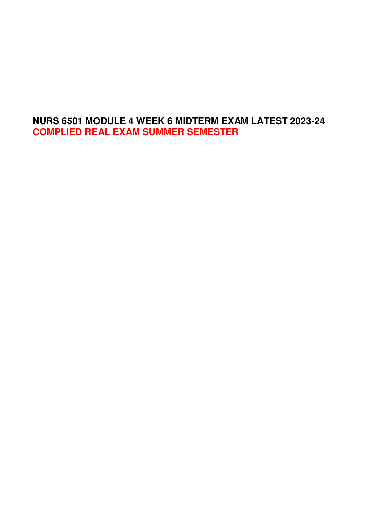 This comprehensive study guide for NURS 6501 Midterm Exam is specifically tailored for the 2023-2024 academic year. Packed with insightful information and practice questions, it provides you with everything you need to master the material and achieve your desired results. Boost your exam confidence and avoid resits!