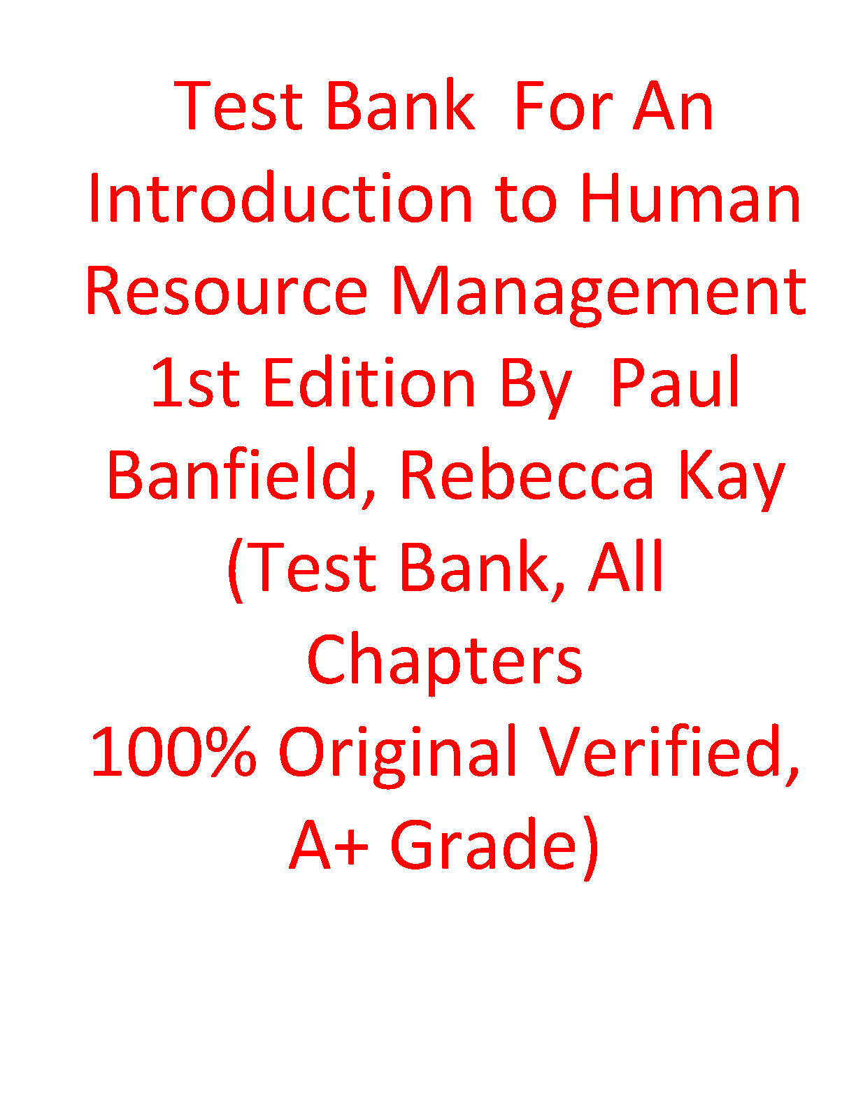 Test Bank for An Introduction to Human Resource Management 1st Edition by Paul Banfield, Rebecca Kay - Ace Your Exams First Attempt!