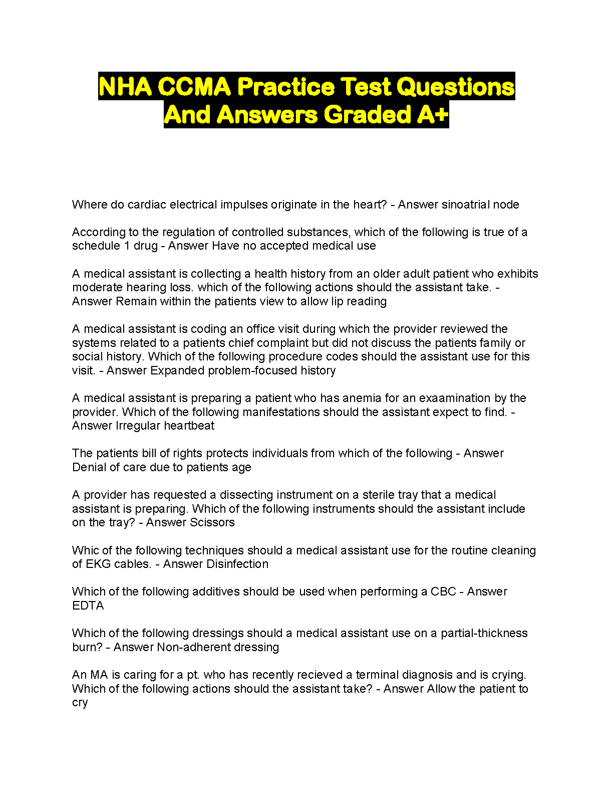 NHA CCMA Practice Test Questions and Answers Graded A+ - 2024/2025 Edition - Ace Your Exams First Try!