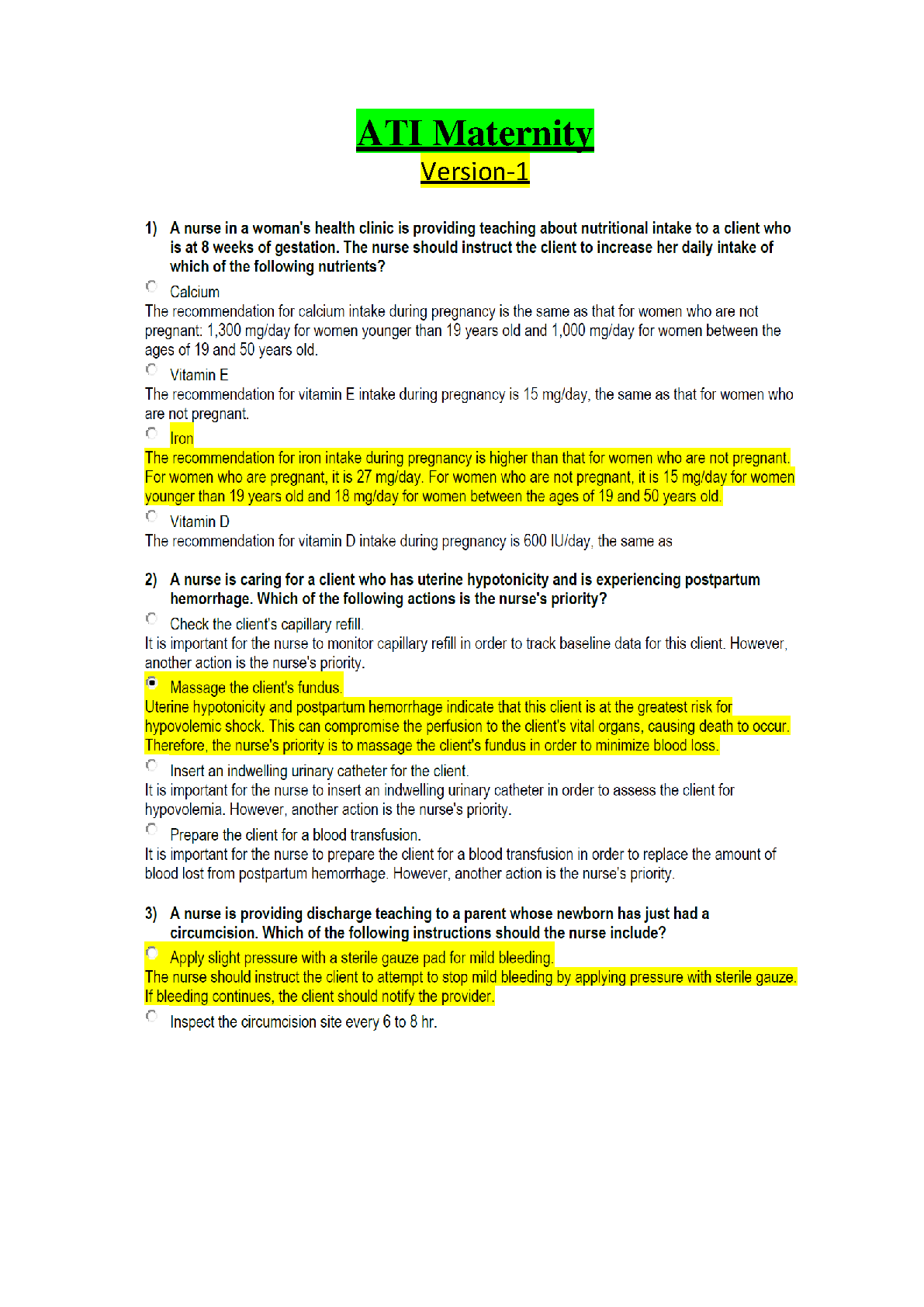 This comprehensive study guide covers key concepts from ATI Maternity Version-1, designed to help nursing students ace their exams on the first attempt and avoid resits.