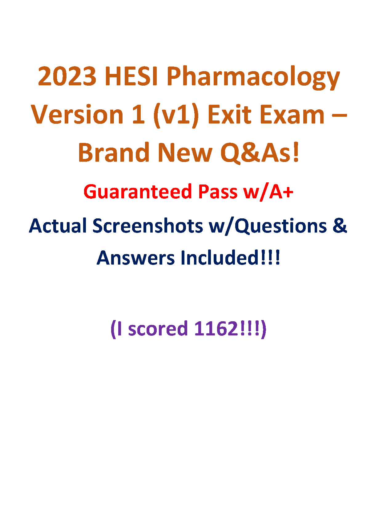 2023 HESI Pharmacology Version 1 (v1) Exit Exam - Brand New Q&As! - Guaranteed Pass w/A+ - Actual Screenshots w/Questions & Answers Included!!