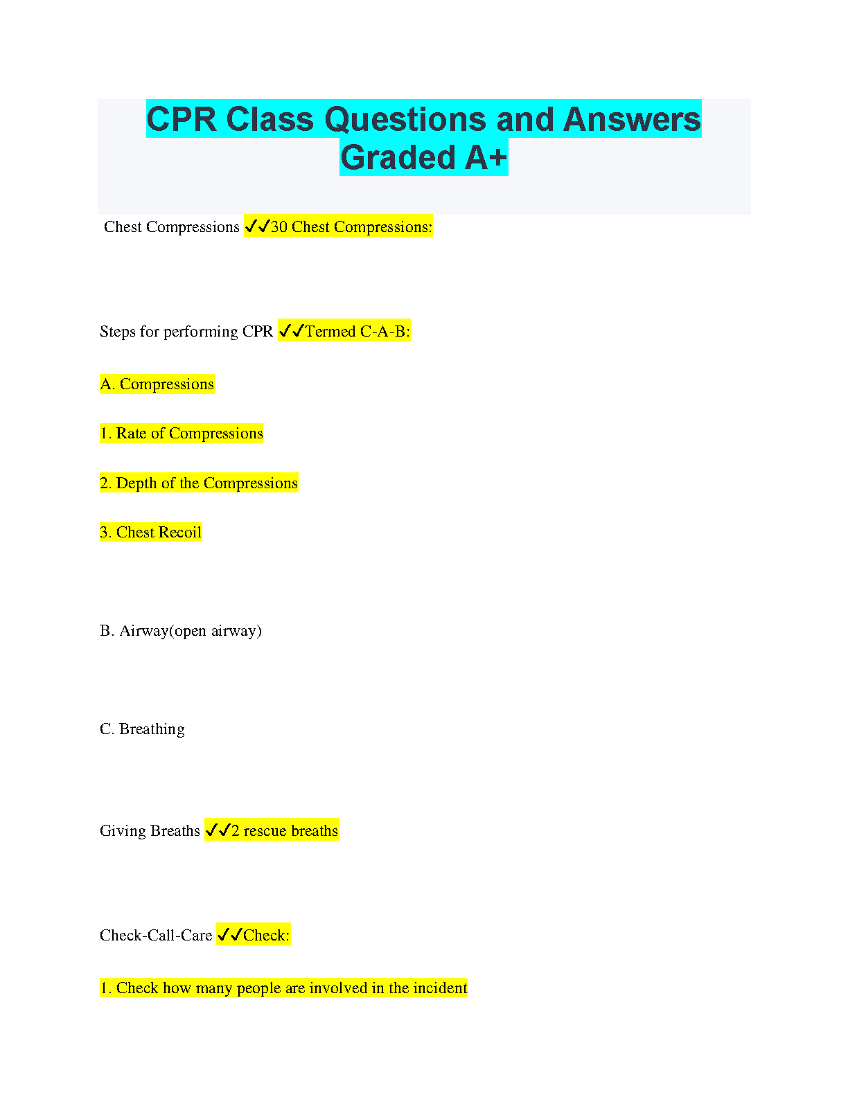 This resource is designed to help students prepare for their CPR certification exam. It features questions and answers covering all aspects of CPR, including chest compressions, airway management, and breathing.